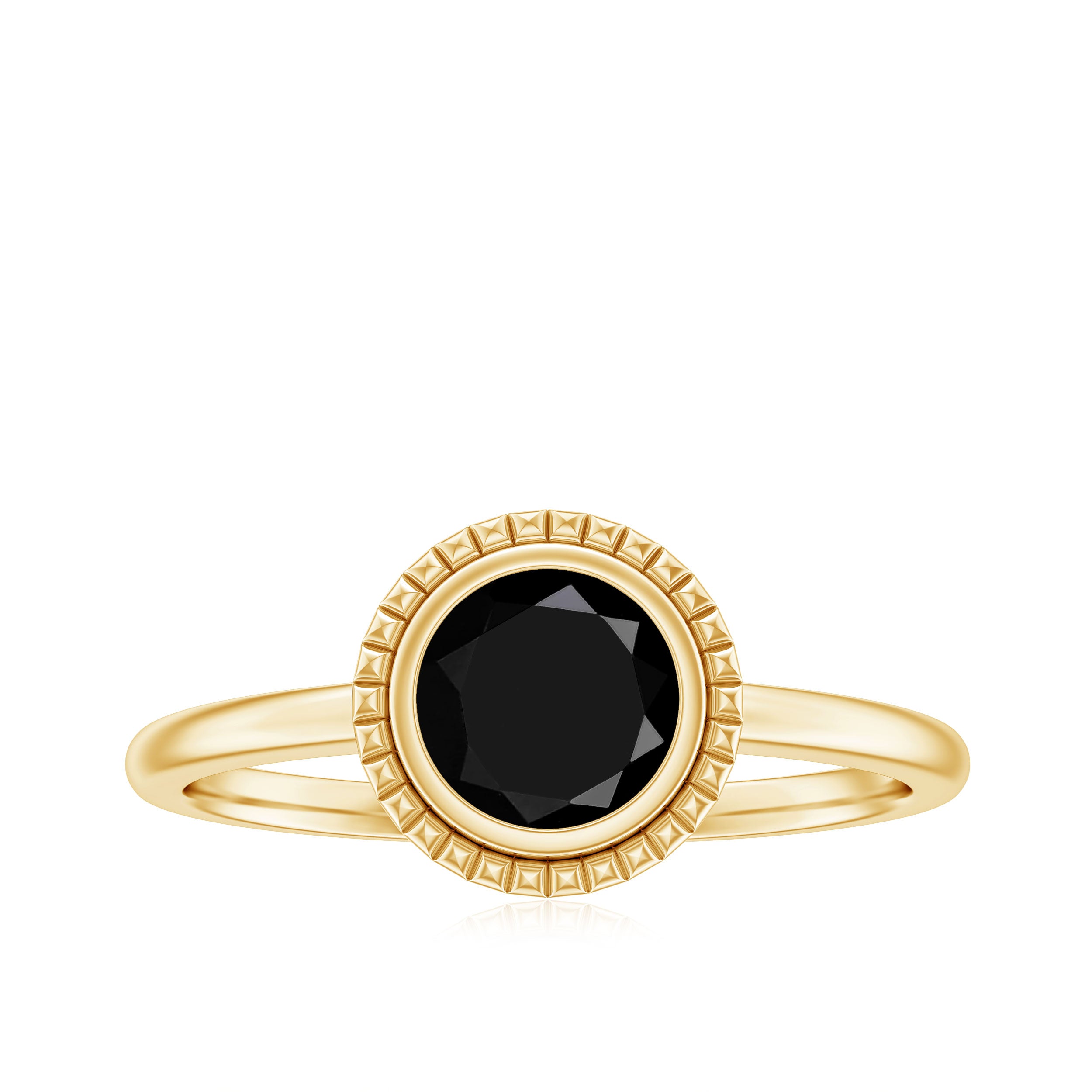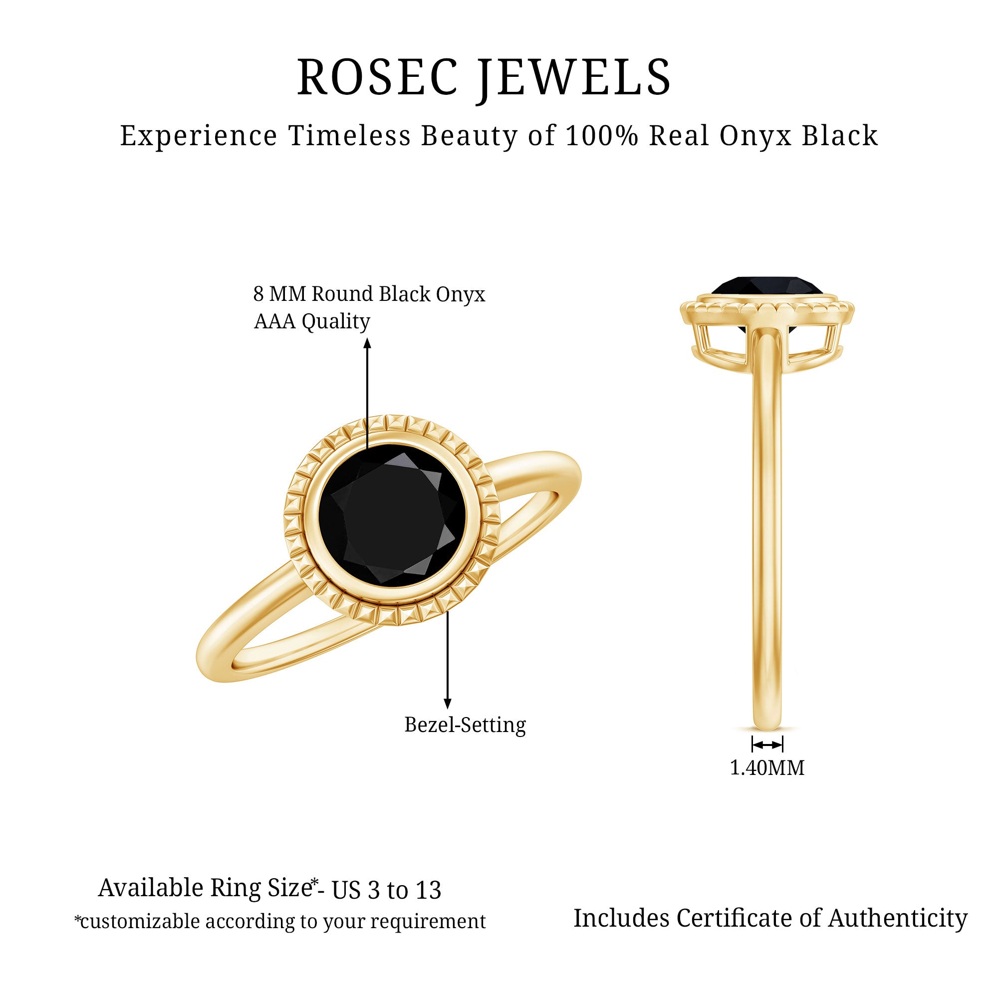 Embrace the joy of love with this elegantly crafted Black Onyx Solitaire Ring, showcase a 8mm round shape Black Onyx set as Solitaire in a engraved Bezel Setting. This 2 Carat Engagement Ring, handcrafted with our experts, symbolizes the unity of love through its intricate engraving design. Meticulously designed and offered in a range of metal options, this Round Engagement Ring embodies the allure of a timeless style. Available in US sizes 3 to 13, we also offer a complimentary ring sizer before finally placing the order to help you to discover the perfect fit, ensuring a seamless experience. Whether you are buying for your girlfriend, fiancée, wife, or mother, this Solitaire Engagement Ring is sure to leave a lasting impression. Presented in a beautiful signature jewelry box, it is ideally suited for any occasion, including engagements, anniversaries, birthdays, or simply to convey your love. With its enduring elegance and unmatched brilliance, this Real Onyx Engagement Ring is a beloved choice, crafted to shine as brightly as your love story.