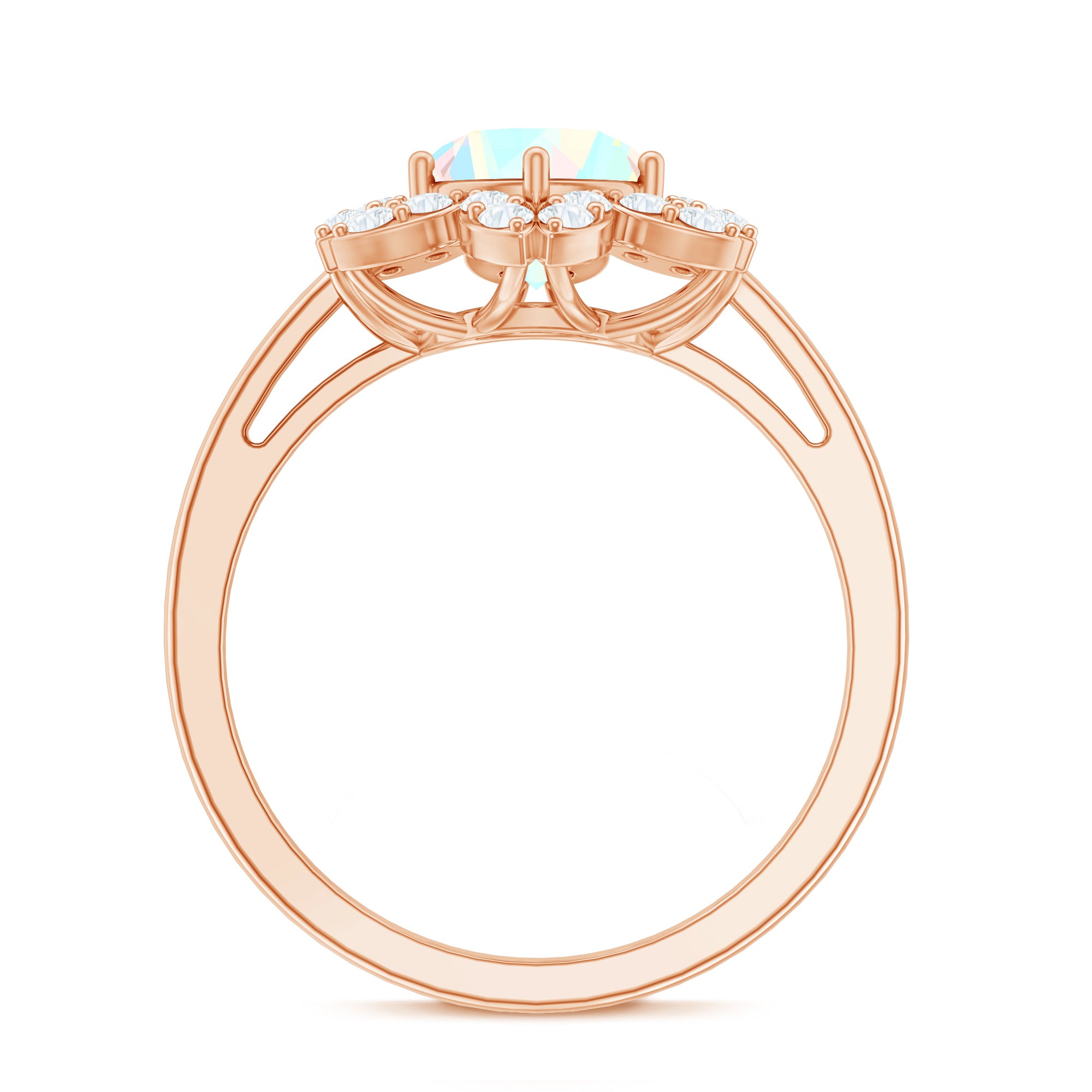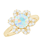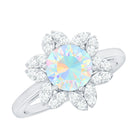 8mm Round Shape Ethiopian Opal Floral Engagement Ring with Diamond