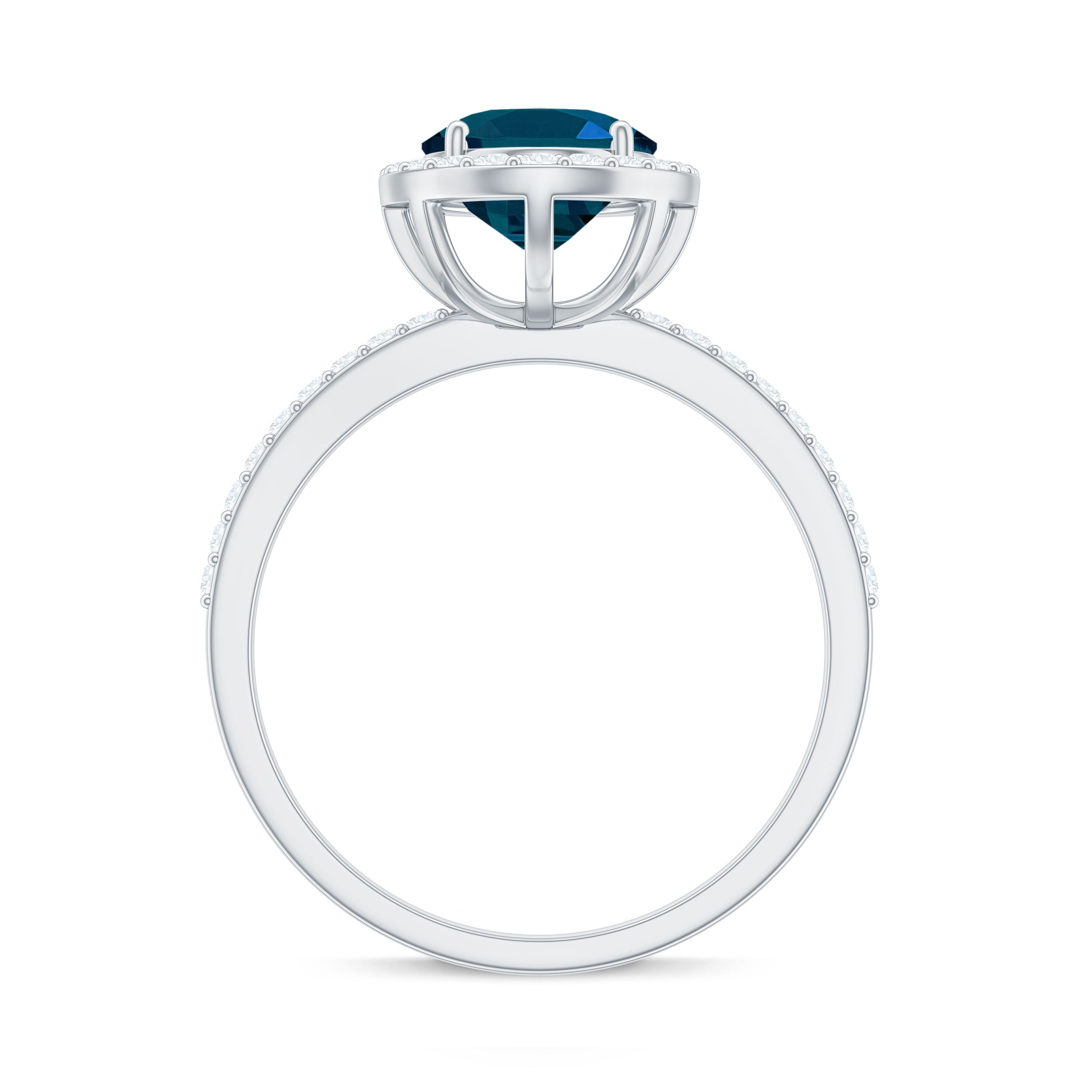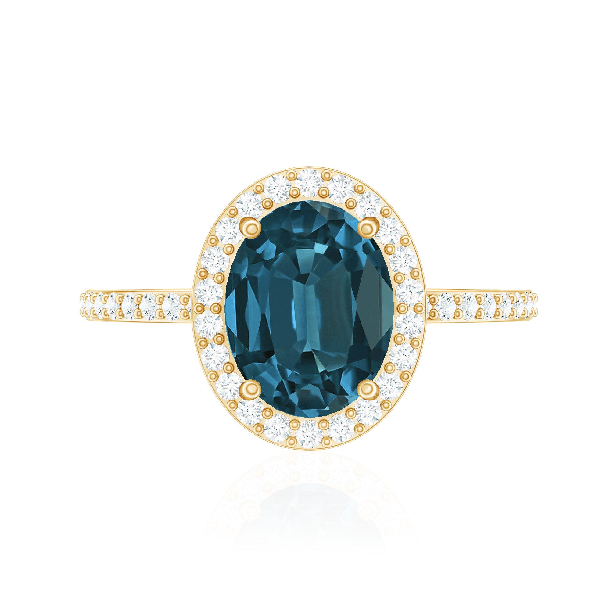 8X10mm Oval Cut London Blue Topaz Oblong Engagement Ring with Diamond Halo