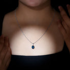 Glam up your jewelry collection with this London Blue Topaz Pendant and light up every gathering with your royal appearance. Our Solitaire Pendant features an 8X10 MM oval shaped London Blue Topaz of AAA quality placed in Prong Setting and crafted in 14K White Gold Plated Silver. The Oval Pendant is further accentuated with a round moissanite and rabbit ear bail that adds style and sparkle to this pendant necklace. To ensure its quality, it includes a certificate of authenticity, providing peace of mind. This stylish London blue topaz pendant can be perfect gift for anniversaries and other special days.