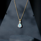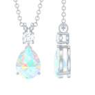 8X10MM Pear Shaped Rainbow Opal Teardrop Necklace with Moissanite