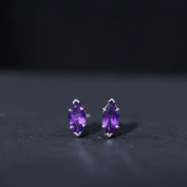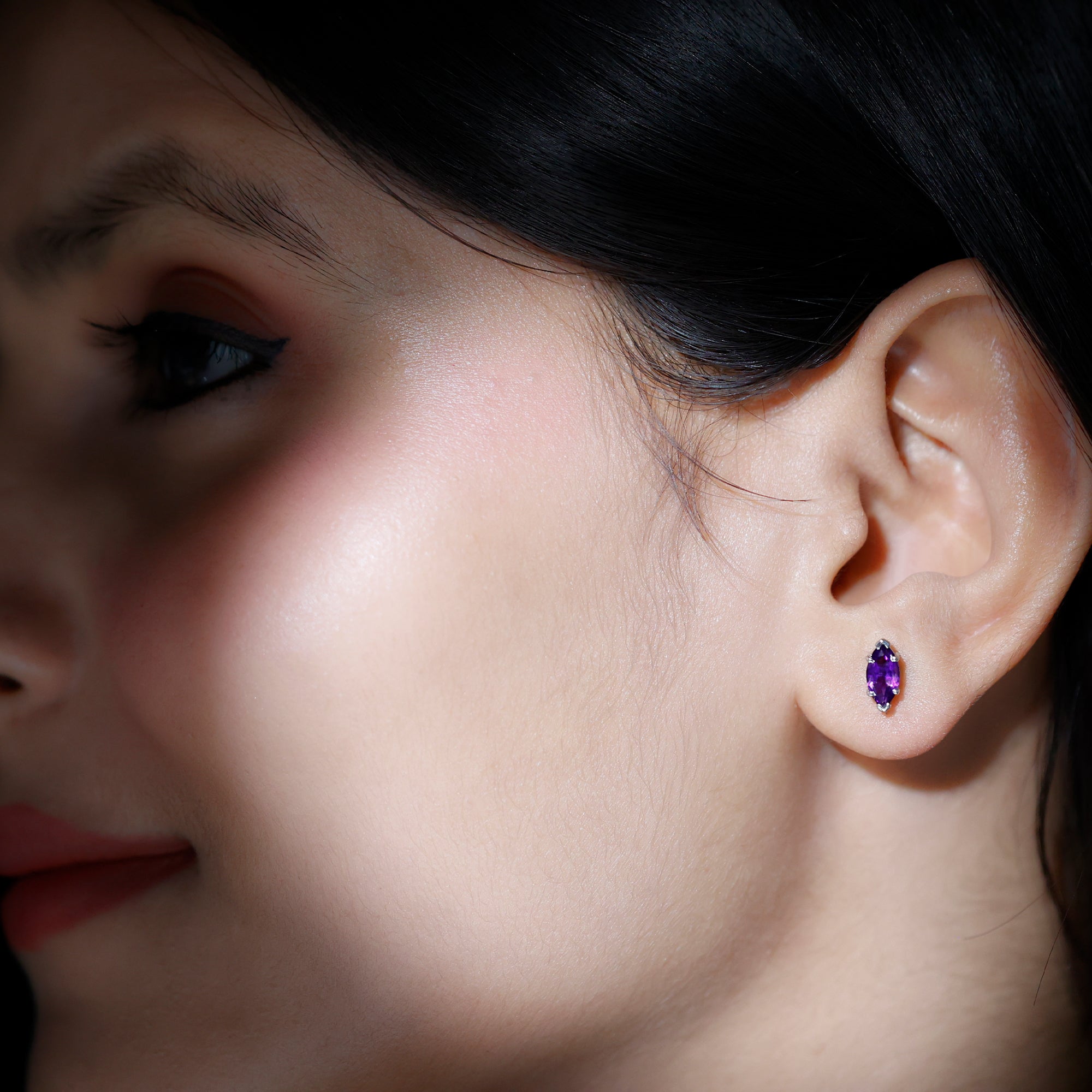 8X4 MM Marquise Cut Amethyst Solitaire Stud Earring