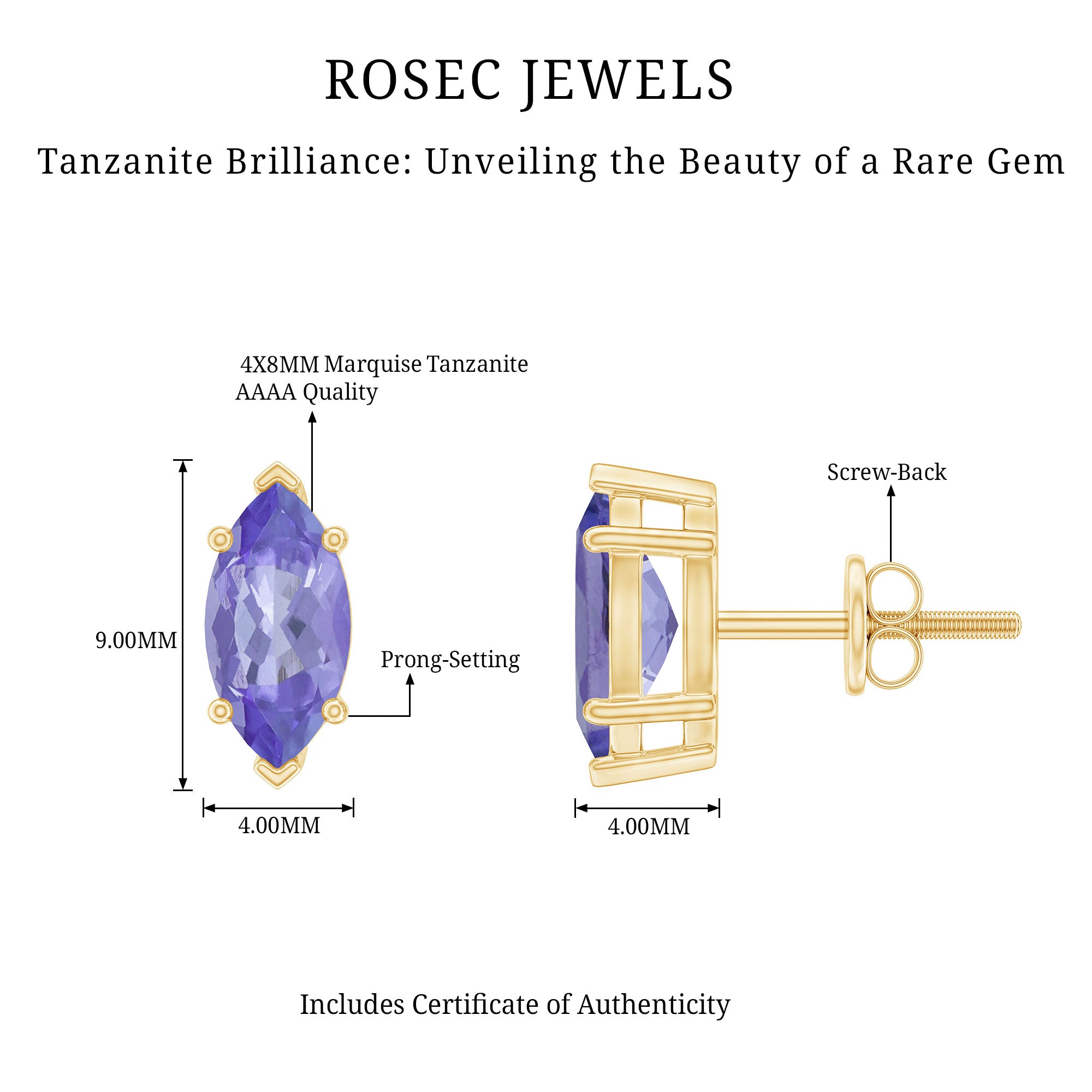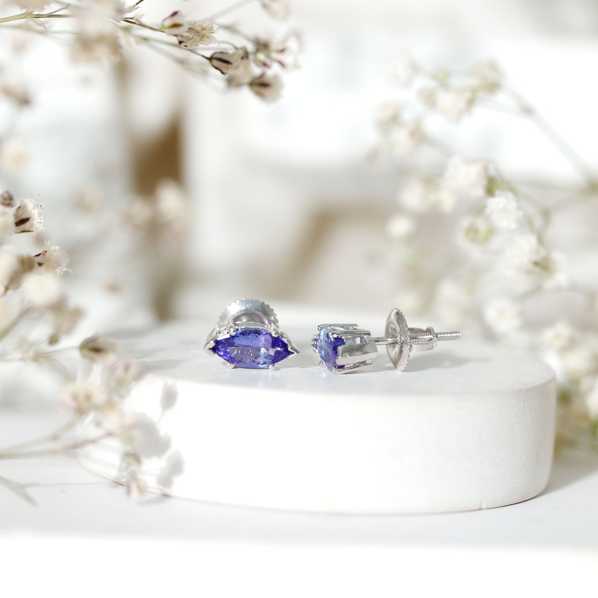 8X4 MM Marquise Cut Tanzanite Solitaire Stud Earring