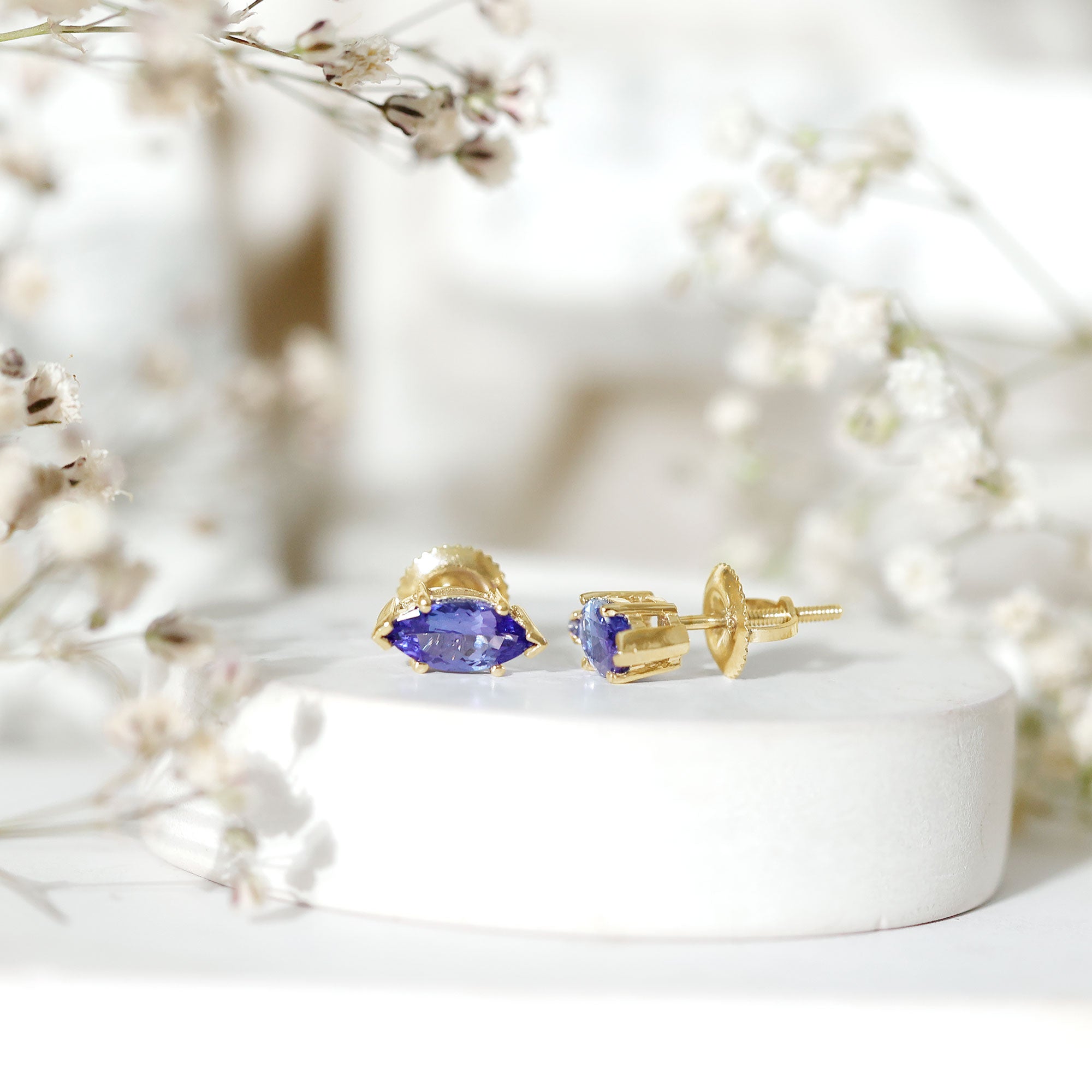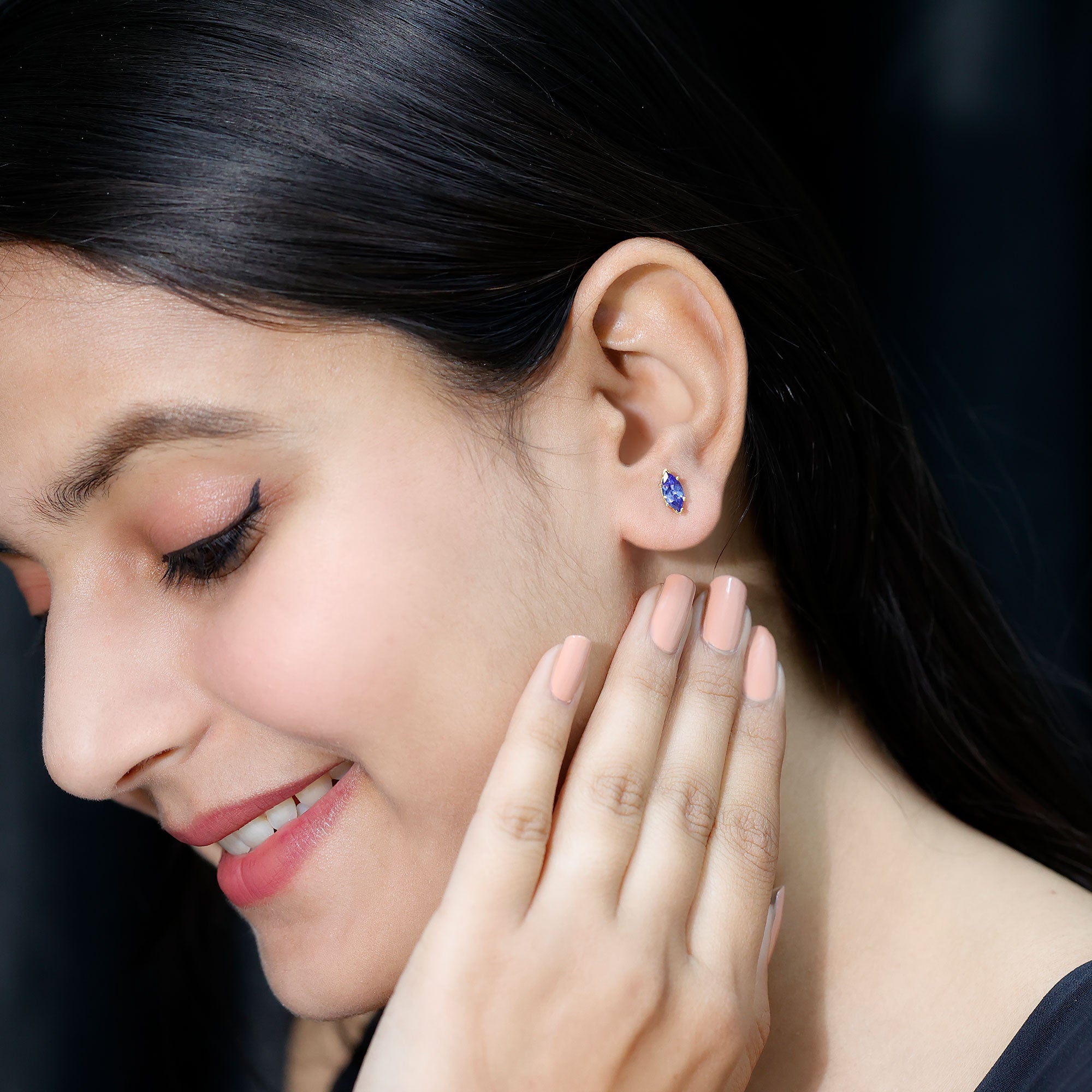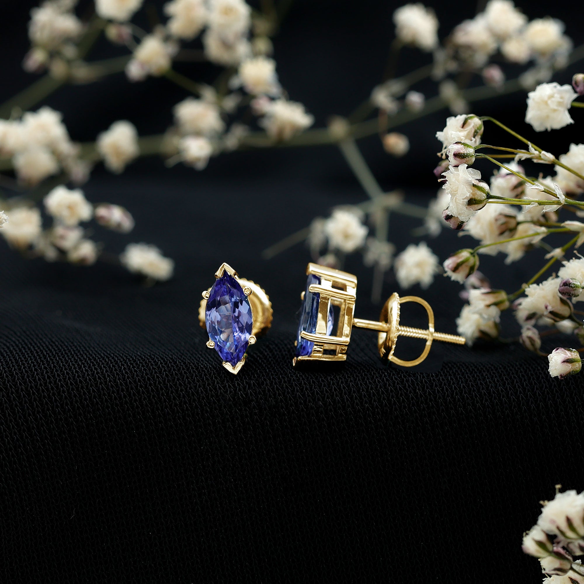 Enhance your beauty with these beautiful Stud Earring Embellished with Marquise Cut Tanzanite set as Solitaire in Prong Setting. This Gold Stud Earring is Composed of Solid Gold