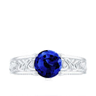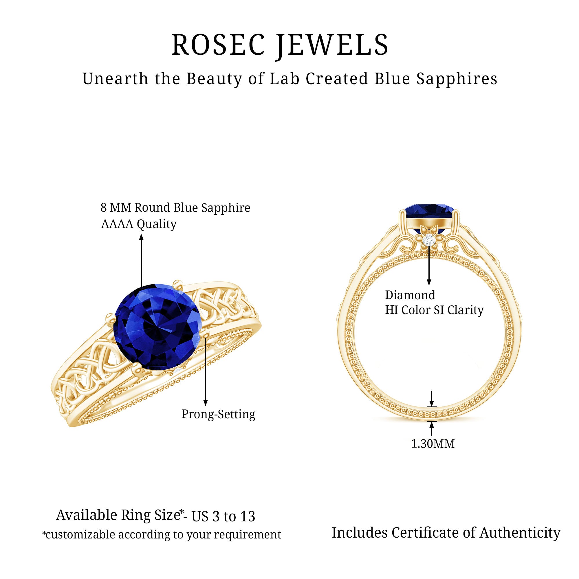 8X8 MM Round Lab Created Blue Sapphire Solitaire Engagement Ring with Surprise Diamond