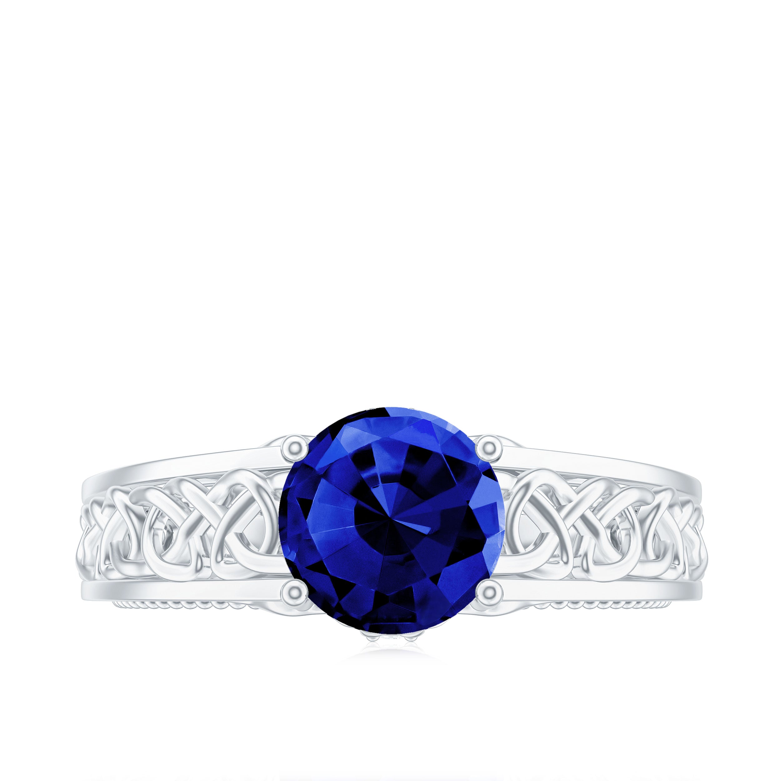 Elevate your love story with a Celtic engagement ring that blends romantic symbolism and refined artistry. At the heart of this design lies a radiant 8X8 MM round lab-created blue sapphire, carefully chosen for its AAAA quality and mesmerizing deep hue. In this beaded engagement ring created blue sapphire stone is cradled in a secure prong setting, the center stone dazzles with clarity while offering excellent durability for everyday elegance. Along the shank, interwoven Celtic knots embody themes of eternal love and unbreakable connection—an ideal motif for a proposal that celebrates both soul and heritage. Beneath the lab created blue sapphire, a surprise diamond detail adds a luxurious secret sparkle, bringing the total carat weight to an impressive 2.8 ctw. More than just a ring, this solitaire engagement ring is a celebration of legacy and style. With its fusion of cultural charm and timeless design, it stands out as a distinctive choice in sapphire rings for women. Perfect for those drawn to meaningful details and contemporary craftsmanship, this ring is destined to become a treasured keepsake, passed down with love.