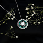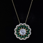 9 MM Lab Grown Diamond Flower Bridal Necklace With Emerald