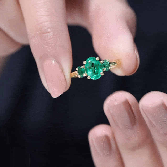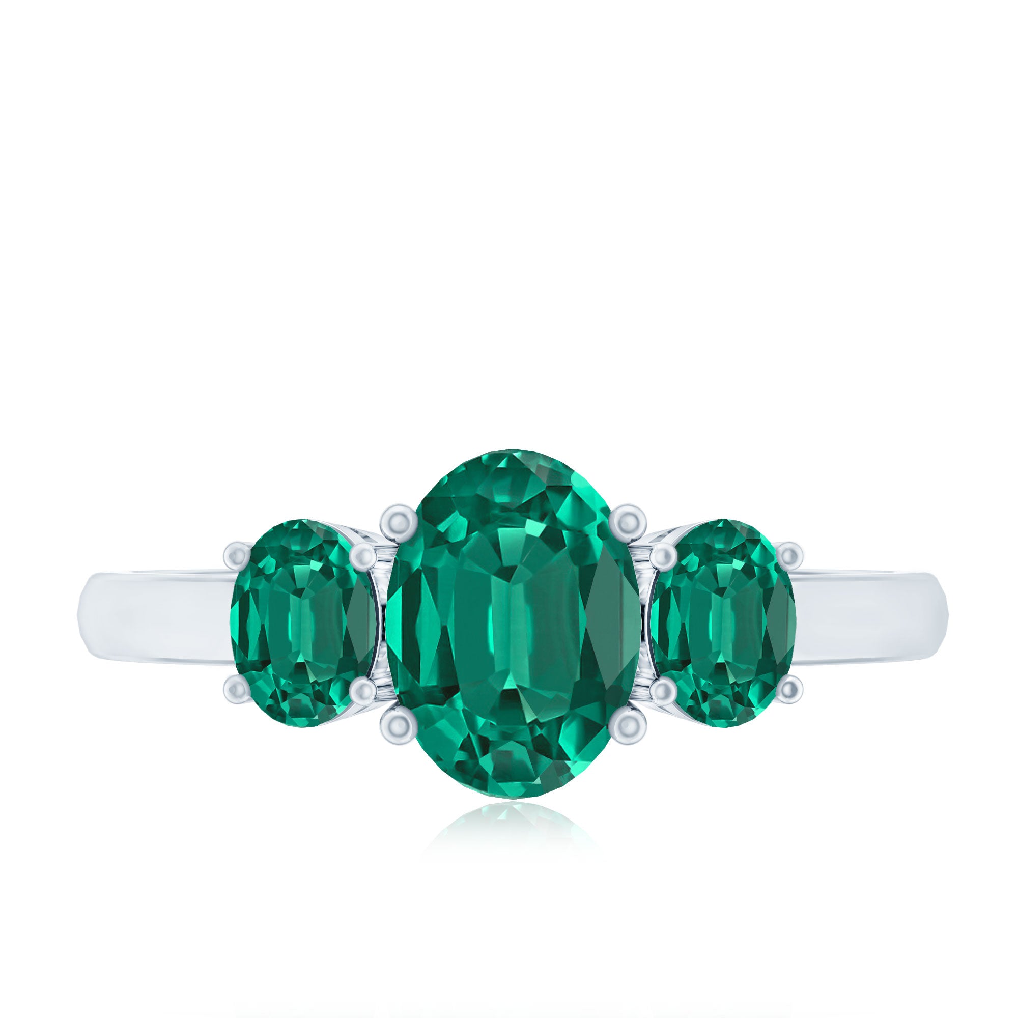 AAAA Quality Oval Cut Lab Created Emerald Three Stone Ring for Women