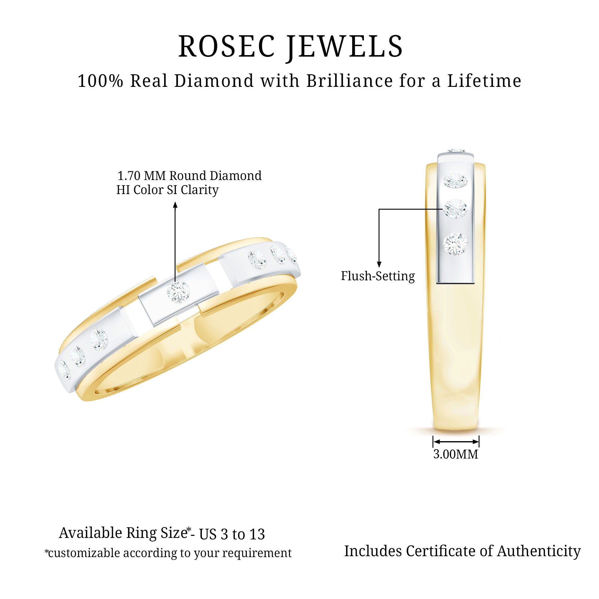 Wait for the Adorable ring; it is strong, It has a magic of might and to turn it all magical we bring this exquisite Diamond Two Tone Unisex Band Ring which is a beautiful wedding ring for the most special person in your life. Be it a special occasion or a valentine eve, this Gemstone Ring in Flush Setting is the answer to all so grab it when you can.