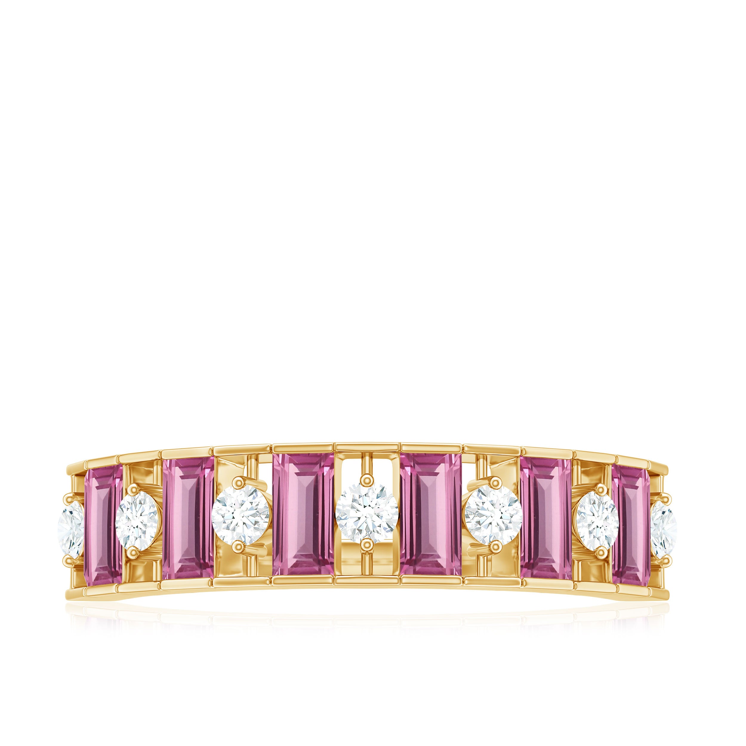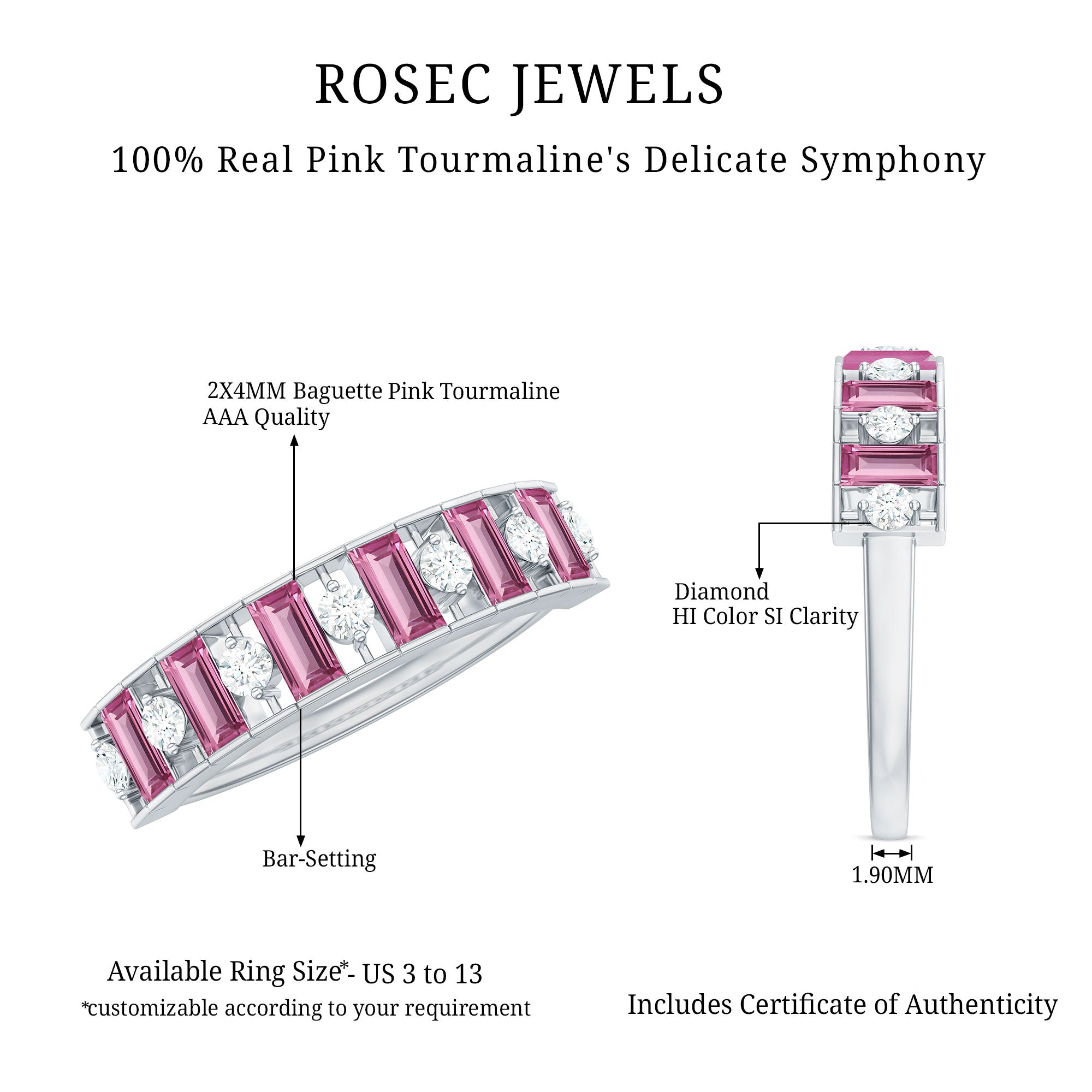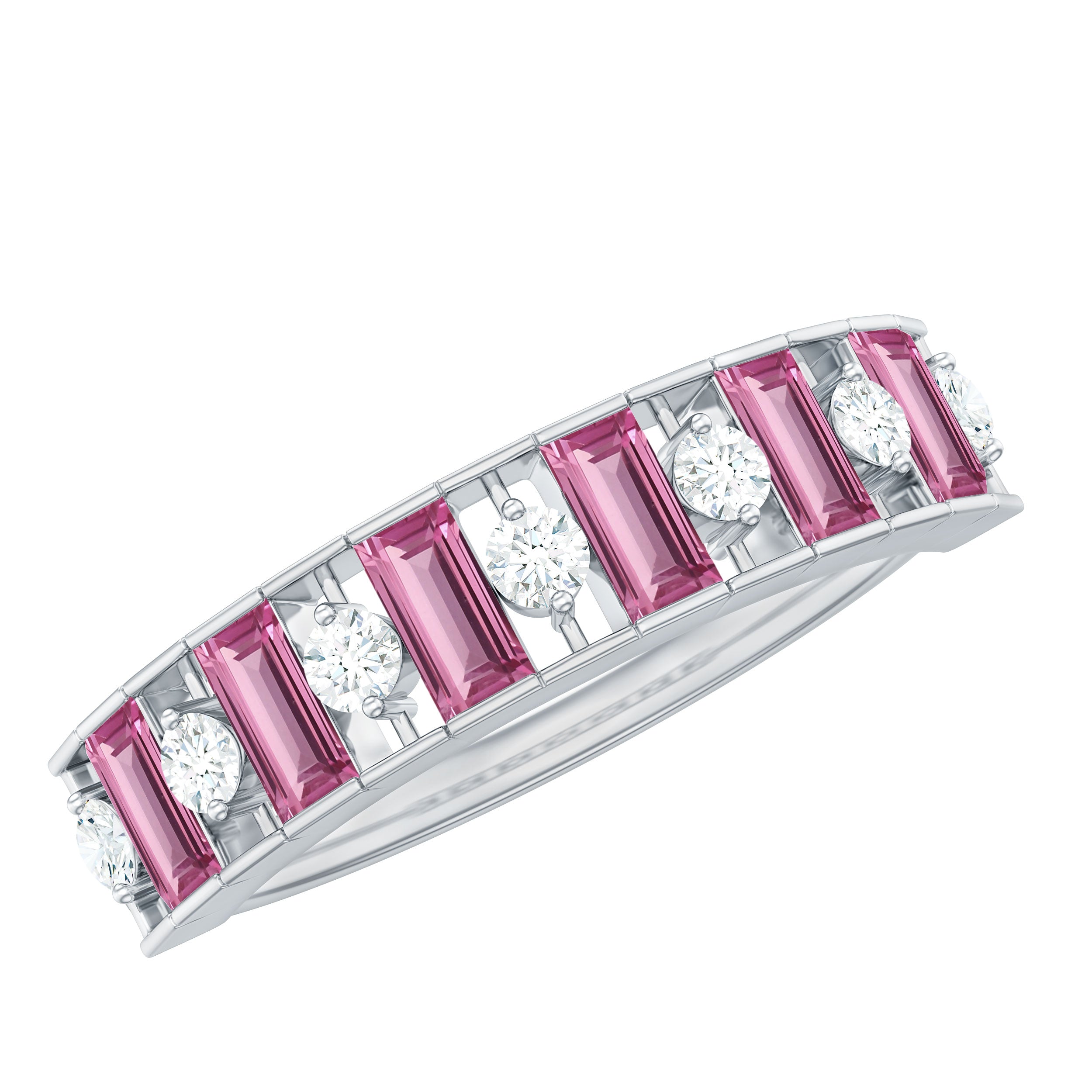 Alternate Pink Tourmaline and Diamond Half Eternity Ring