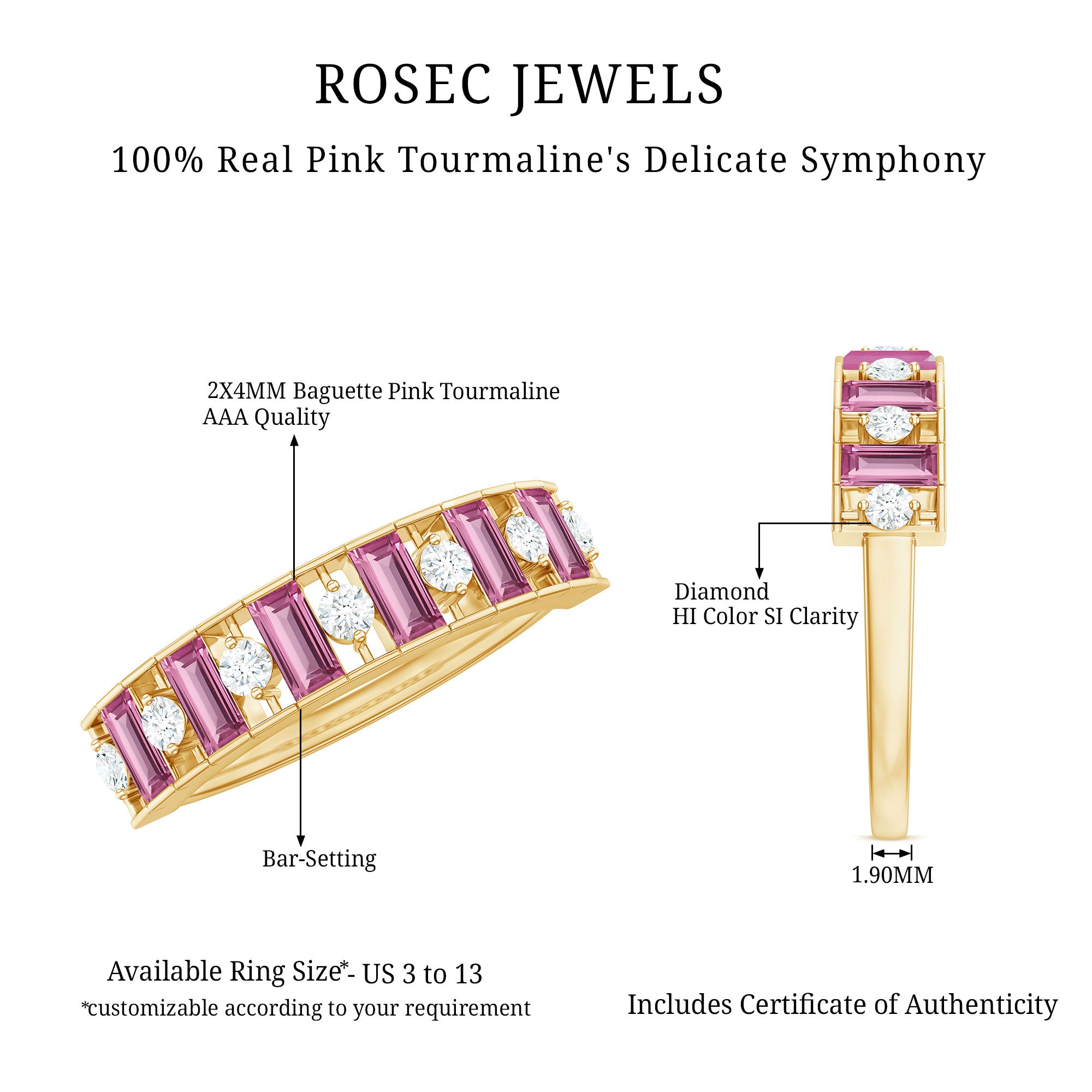 Indulge in the exquisite beauty of this Half Eternity Ring. The alternating arrangement of Pink Tourmaline and dazzling Diamond gemstones creates a captivating rhythm of colors and brilliance. Embrace the charm of this half eternity ring, a perfect blend of natures hues and eternal sparkle, celebrating your cherished bond with every glance.