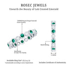 This Lab Emerald Band Ring is sleek and simple, showcasing high brilliance and a rich green hue. It features a continuous line of sparkling Moissanite gemstones, offering a minimal yet elegant look. Adorned with securely held Lab-Created Emerald and Moissanite in Bezel Setting, this Lab Emerald Eternity Ring is perfect for embarking on a new journey or celebrating an anniversary. It is designed to be stacked with other rings or worn alone for a striking statement. This beautiful May Birthstone Ring creates a dynamic and eye-catching design that adds a touch of extravagance and sophistication.