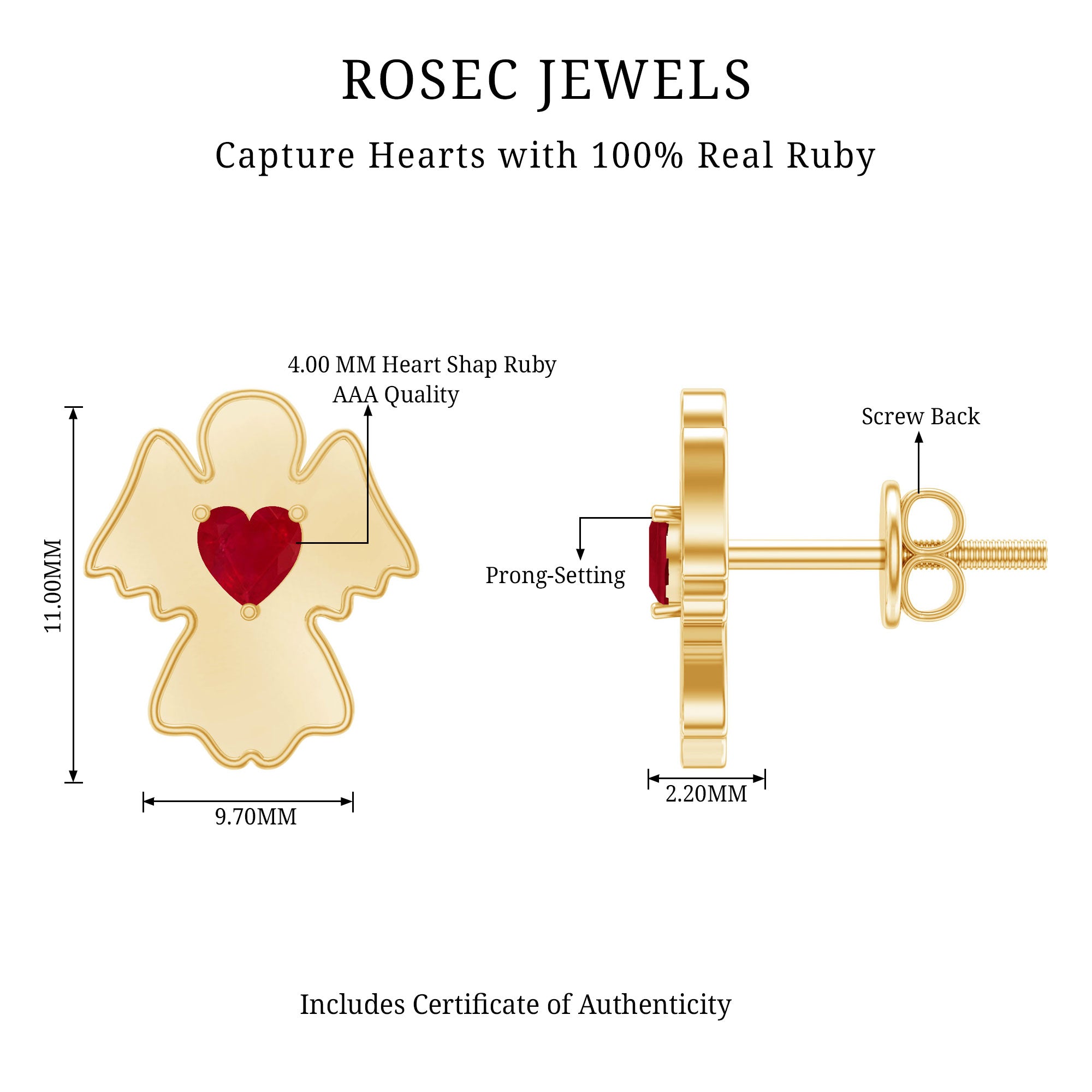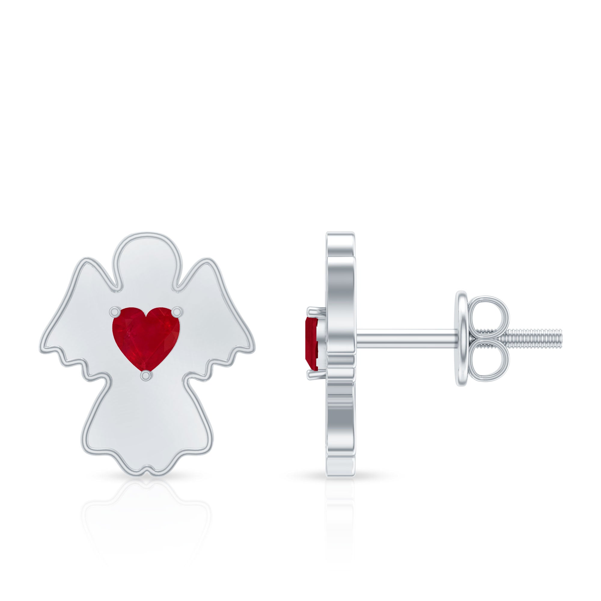 Show your playful side with these Angel Stud Earrings as they are a perfect choice for you, whether you are dressed up or down. Embellished with Heart Shape Ruby set on an angel design, makes it an eye-catching piece. The Angel Earrings secures comfortably with screw backs. Make a charming addition to your jewelry collection by getting these Ruby Earrings or give them away to someone special as a Halloween gift.