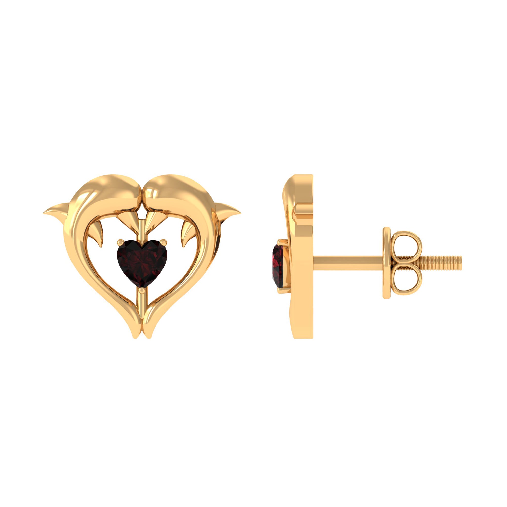 These Dolphin Heart Stud Earrings are a true treasure for all the animal lovers out there! Speaking aloud of your love for this queen of the sea, 4 MM Heart Shape Garnet sits pretty at the center secured by 3 Prong Setting. Two metal-crafted dolphins come together to surround the centerpiece, effortlessly enclosing the design in a Heart Shape. These Certified Dolphin Heart Earrings are secured by a Screw Back Closure to allow for an effortless and snug fit against the earlobe.