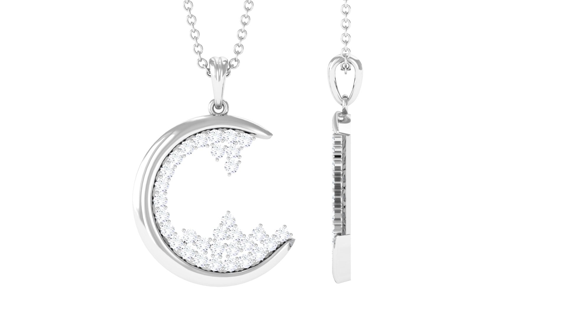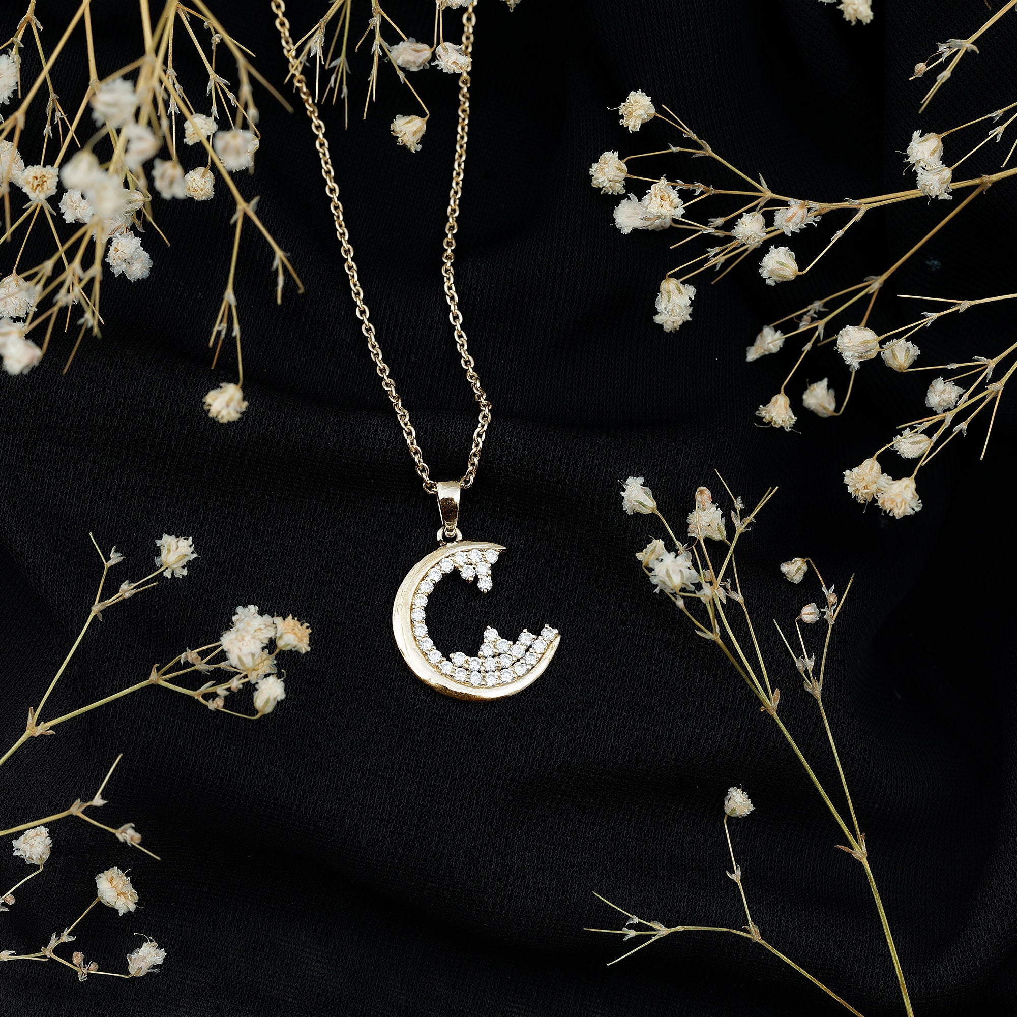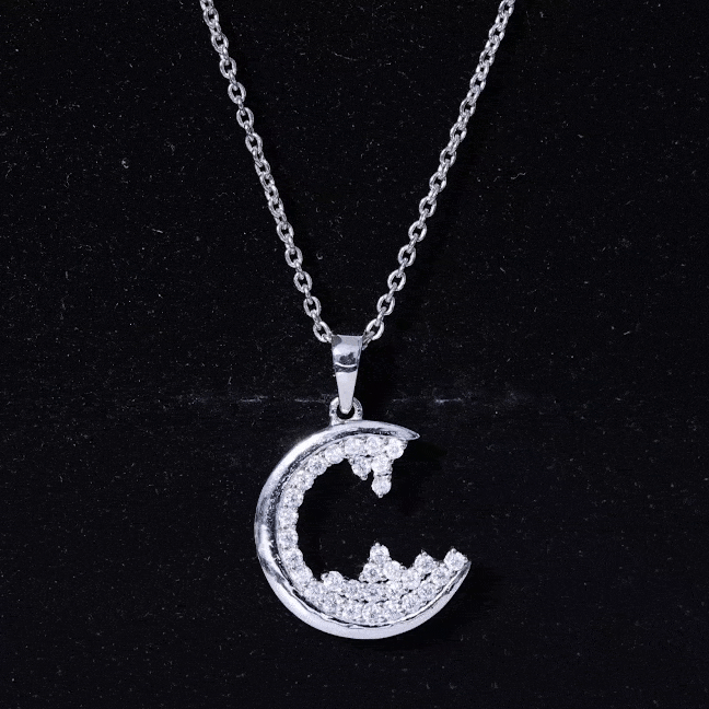 Gracefully draping upon the wearers shoulders, this necklace boasts a dainty and delicate presence. Embedded by brilliant Moissanite your necklace will glisten for every eye it meets. A classy yet bold piece that can stand alone or accompanied by other stylish necklace.