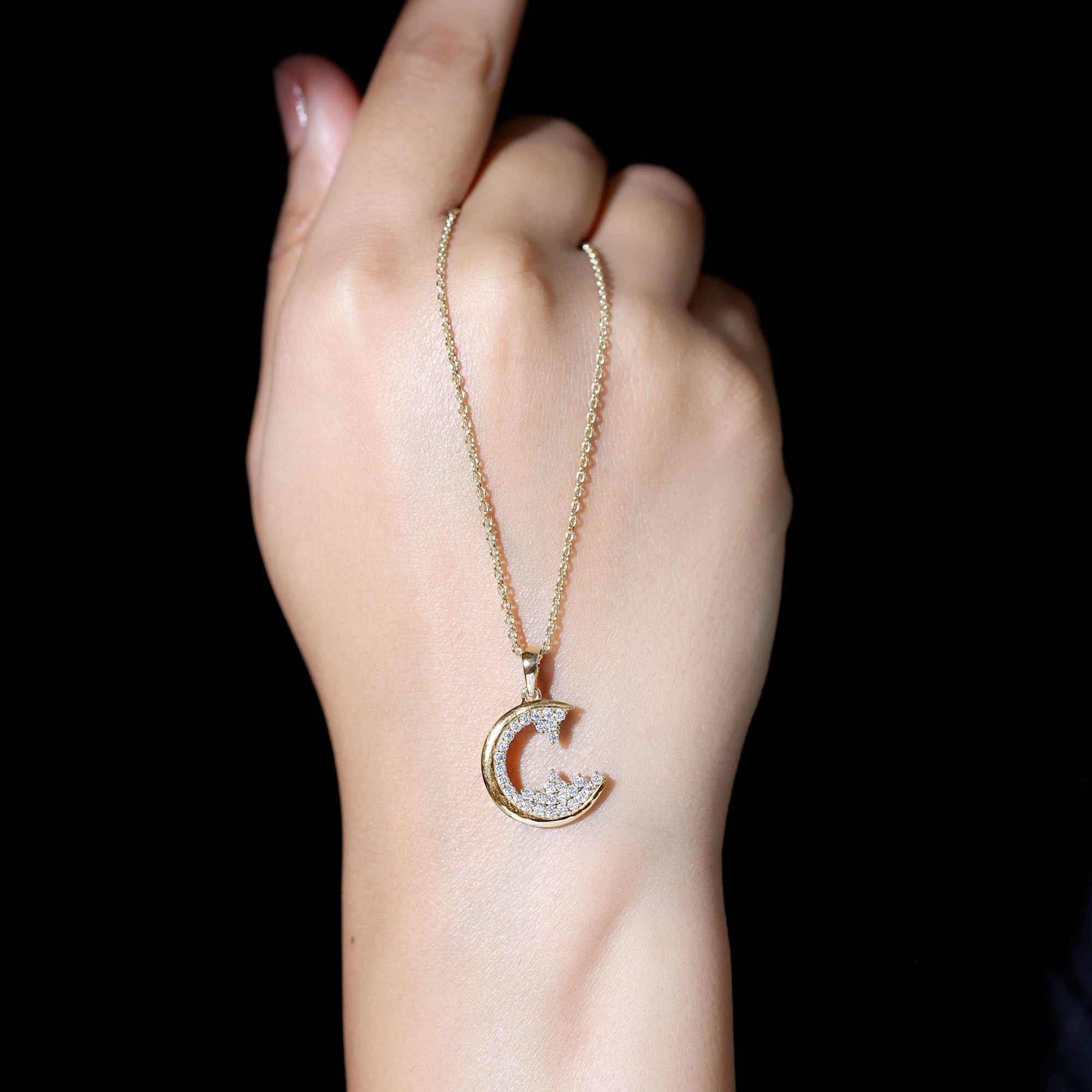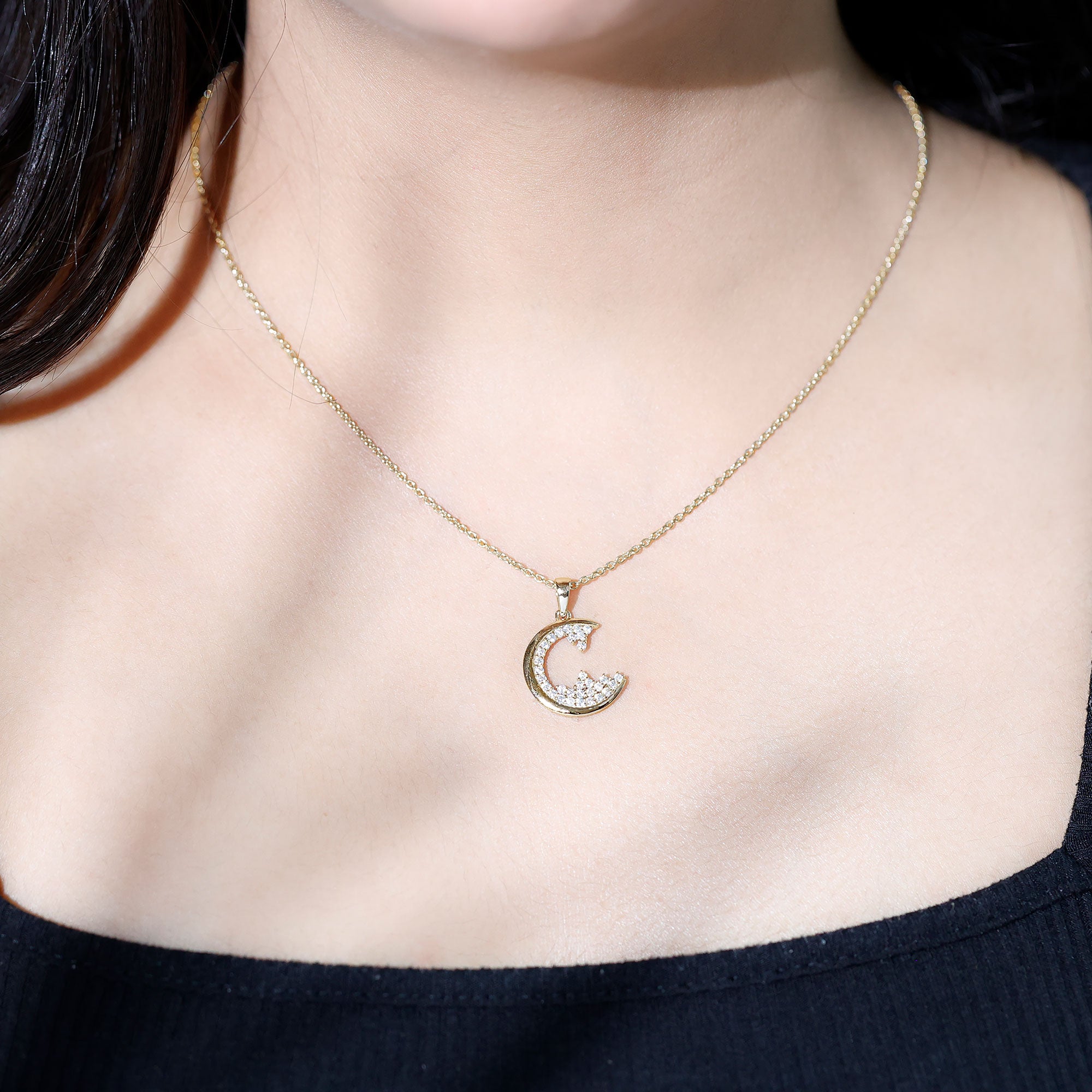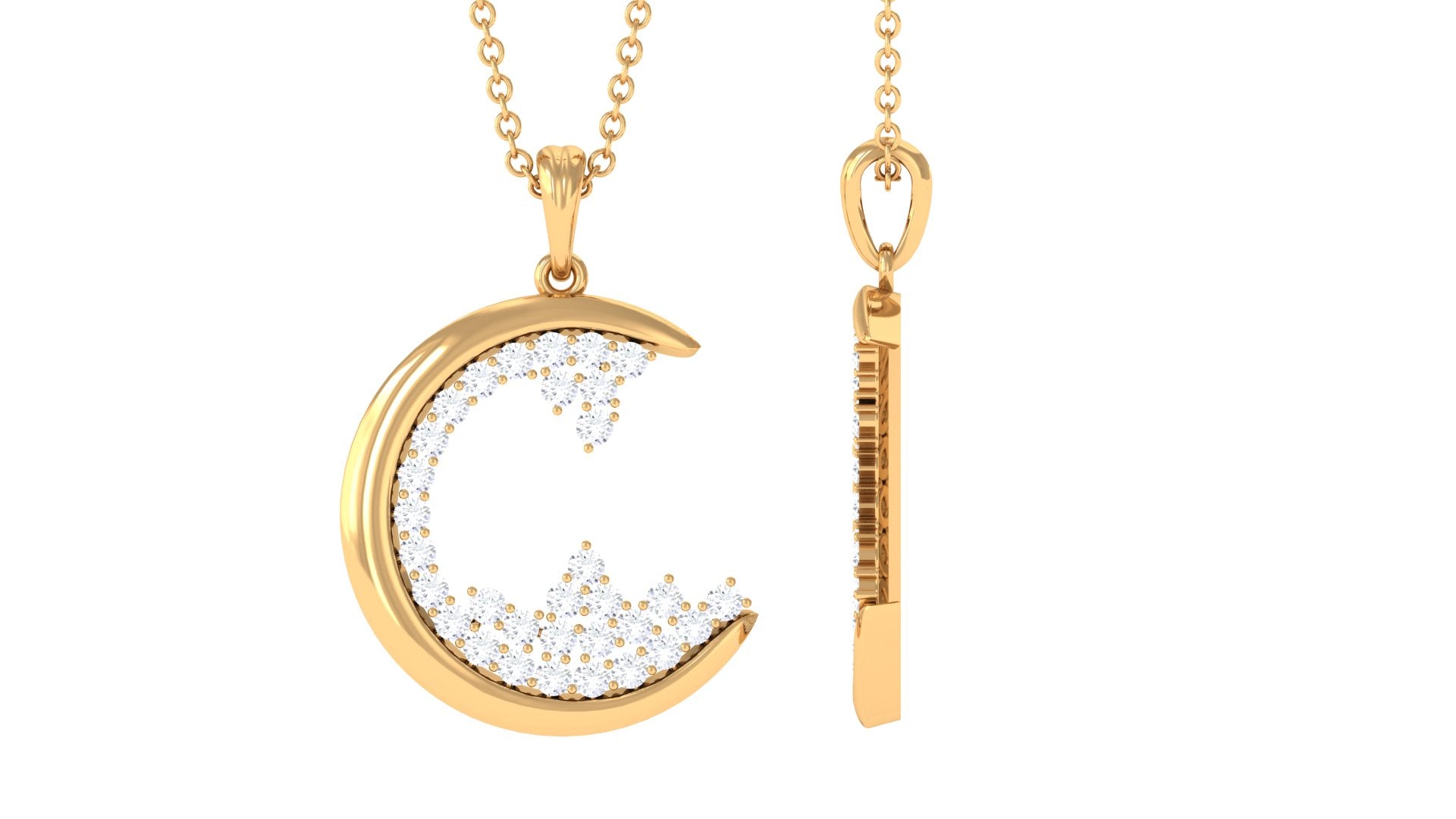 Gracefully draping upon the wearers shoulders, this necklace boasts a dainty and delicate presence. Embedded by brilliant Moissanite your necklace will glisten for every eye it meets. A classy yet bold piece that can stand alone or accompanied by other stylish necklace.