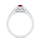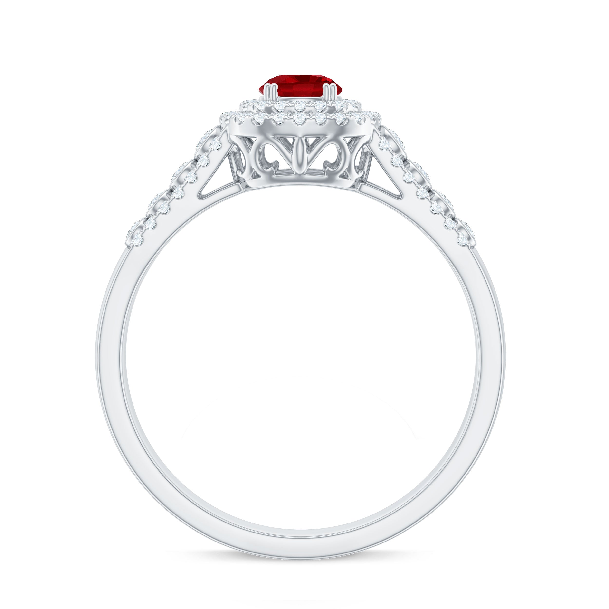 Antique Style Lab Ruby and Moissanite Double Halo Engagement Ring
