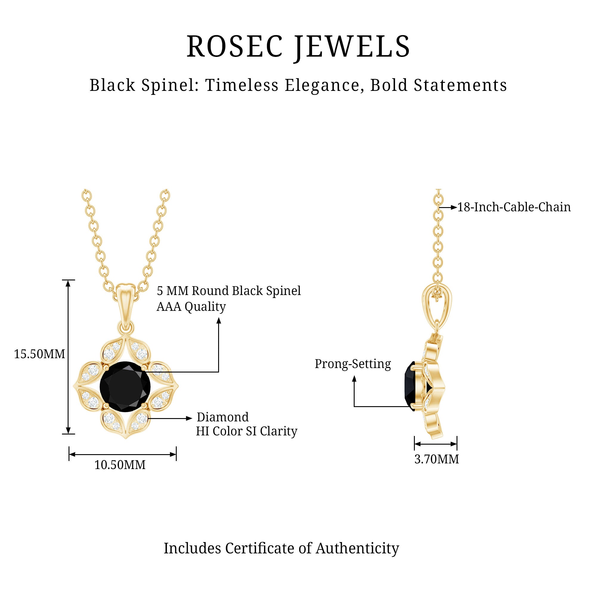 Enhance your bridal ensemble with the breathtaking beauty of this exquisite Natural Black Spinel Pendant. The antique design showcases a round Black Spinel center stone, radiating its deep black allure, elegantly encircled by a halo of sparkling Diamond gemstones. This pendant is the perfect choice for brides-to-be seeking a timeless and elegant piece of jewelry to adorn themselves on their special day.