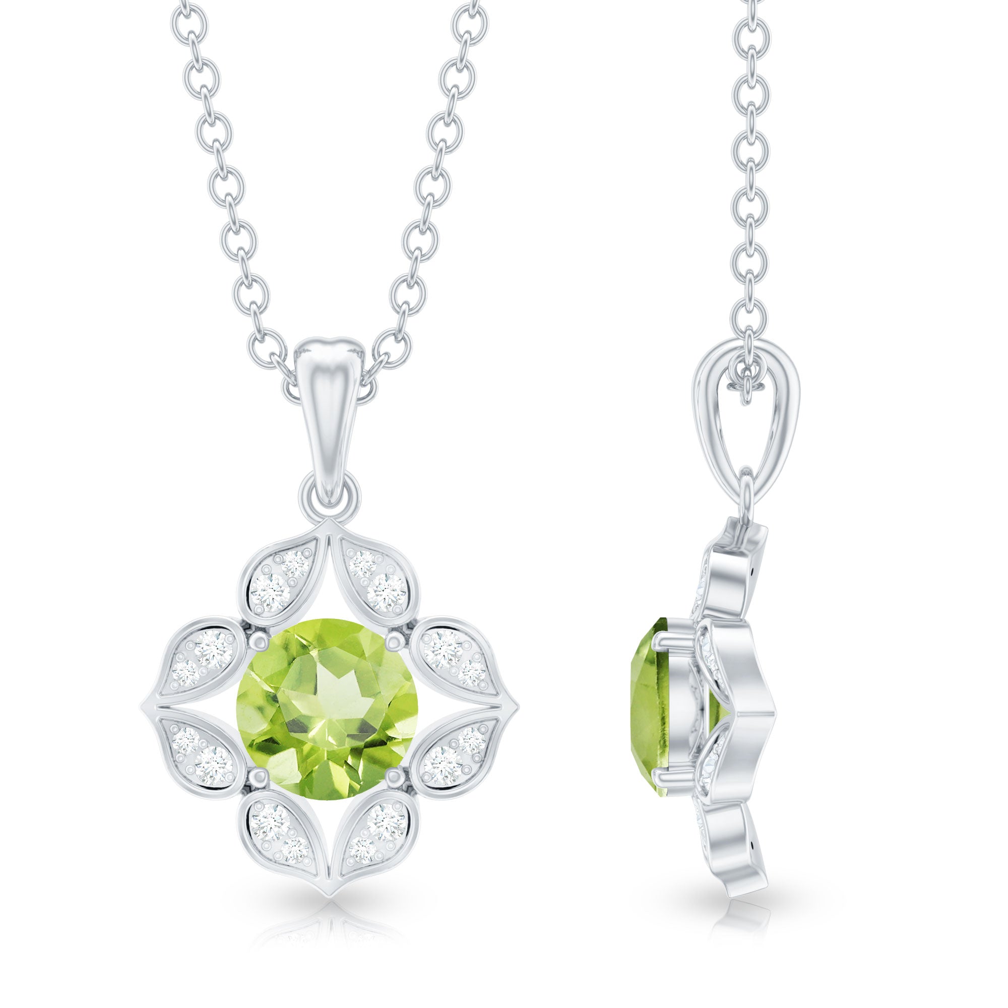 Antique Style Natural Peridot Bridal Pendant with Diamond