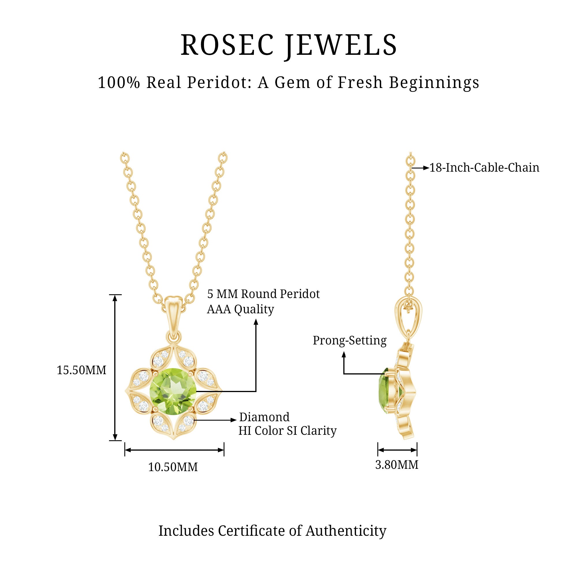 Enhance your bridal ensemble with the breathtaking beauty of this exquisite Natural Peridot Pendant. The antique design showcases a round Peridot center stone, radiating its deep green allure, elegantly encircled by a halo of sparkling Diamond gemstones. This pendant is the perfect choice for brides-to-be seeking a timeless and elegant piece of jewelry to adorn themselves on their special day.