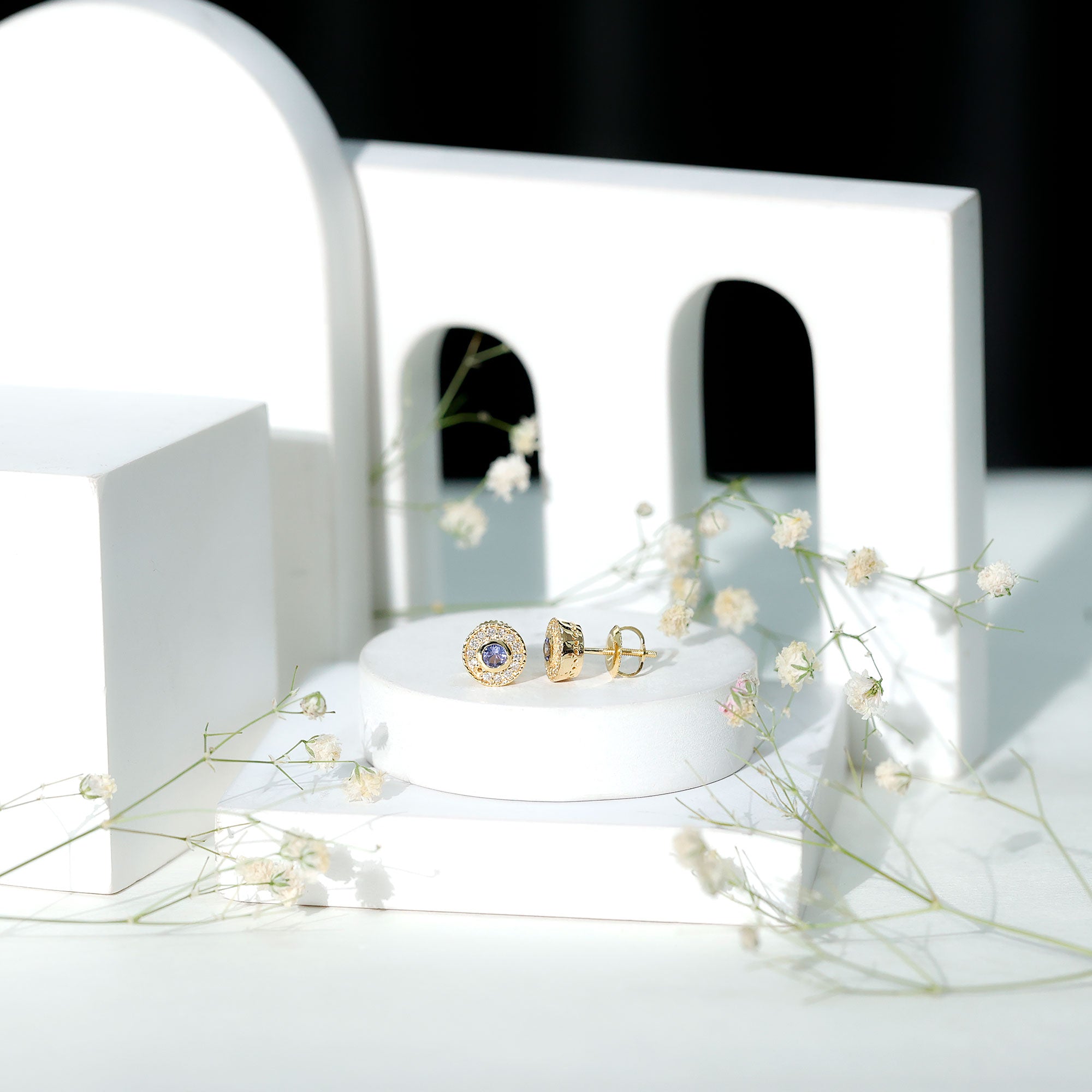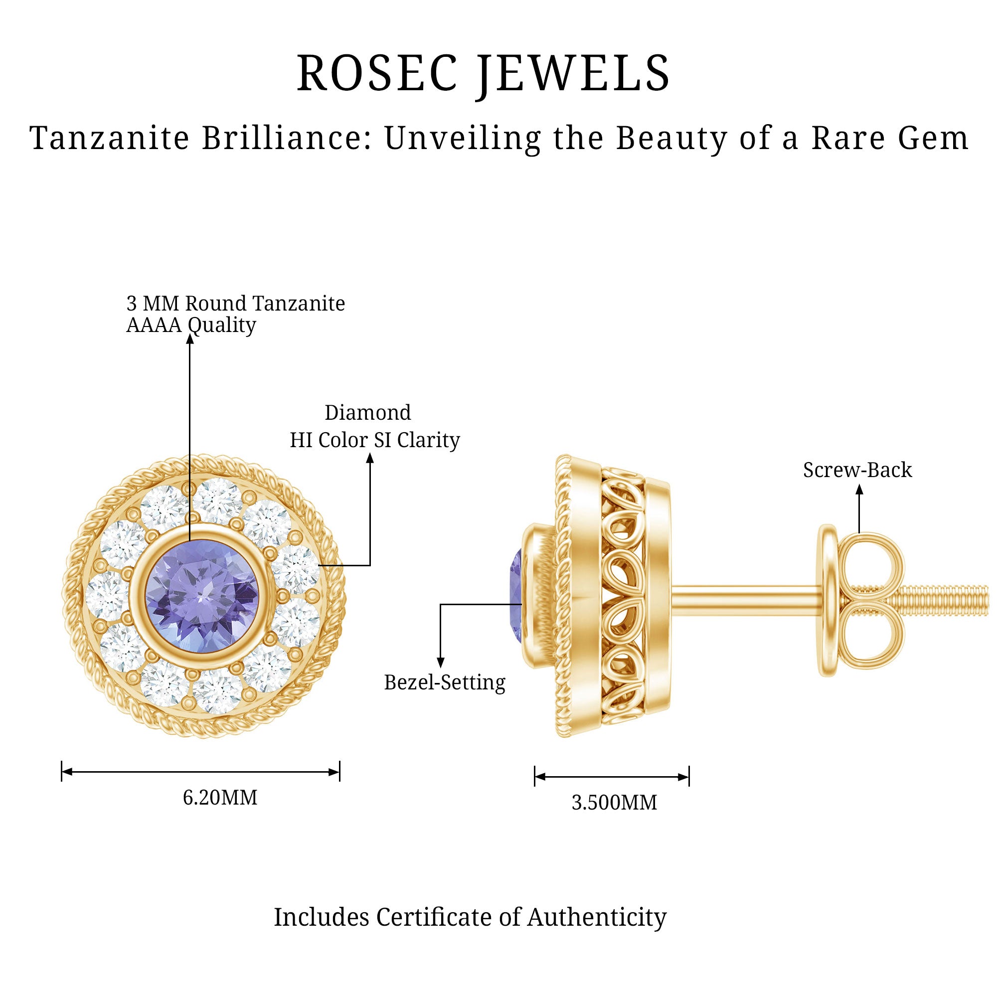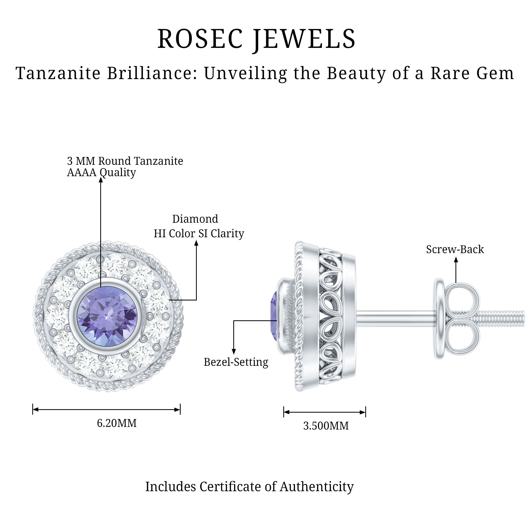Flaunt these mesmerizing Halo Earrings with your casual or party attire and leave everyone enchanted and talking about you. Encrusted with Round Shape Tanzanite in the center secured by Bezel Setting and dainty Round Diamonds studded as Halo. Your jewelry collection wont be complete without including these gorgeous Tanzanite Earrings. Celebrate special occasions by getting these Unique Earrings as a present for your close ones.