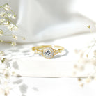 Cubic Zirconia Engagement Ring is desirable, it is classy and adorable. This Antique Engagement Ring is embellished with round cut Zircon with halo and gold milgrain detail catch all the attention, hand wrought in flashing gold to create a luxurious appeal. This CZ Engagement Ring is every womens desire, get it for her and celebrate your biggest occasion with your lady.