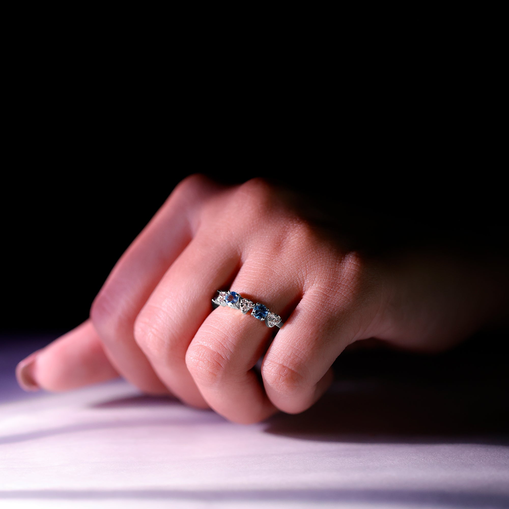 Celebrate eternal love with this Aquamarine and Diamond Heart Shape Eternity Ring, where exquisite beauty and heartfelt emotions intertwine.