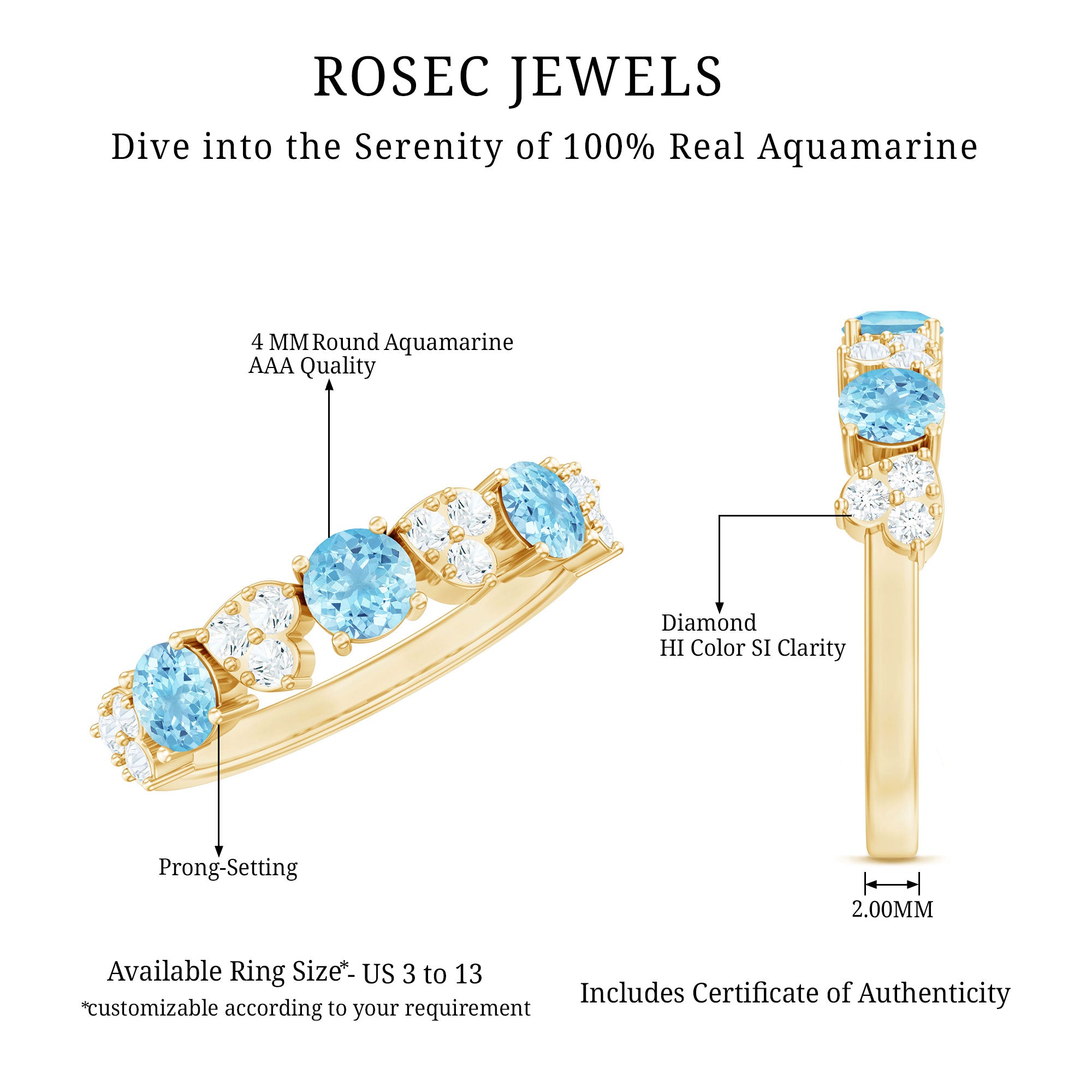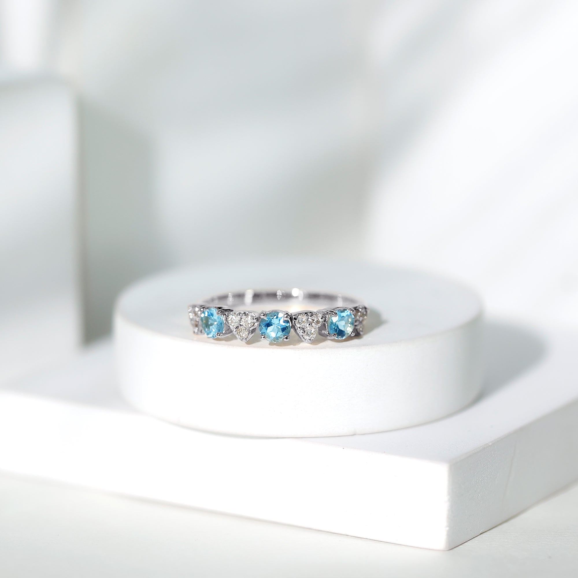 Aquamarine and Diamond Heart Shape Eternity Ring