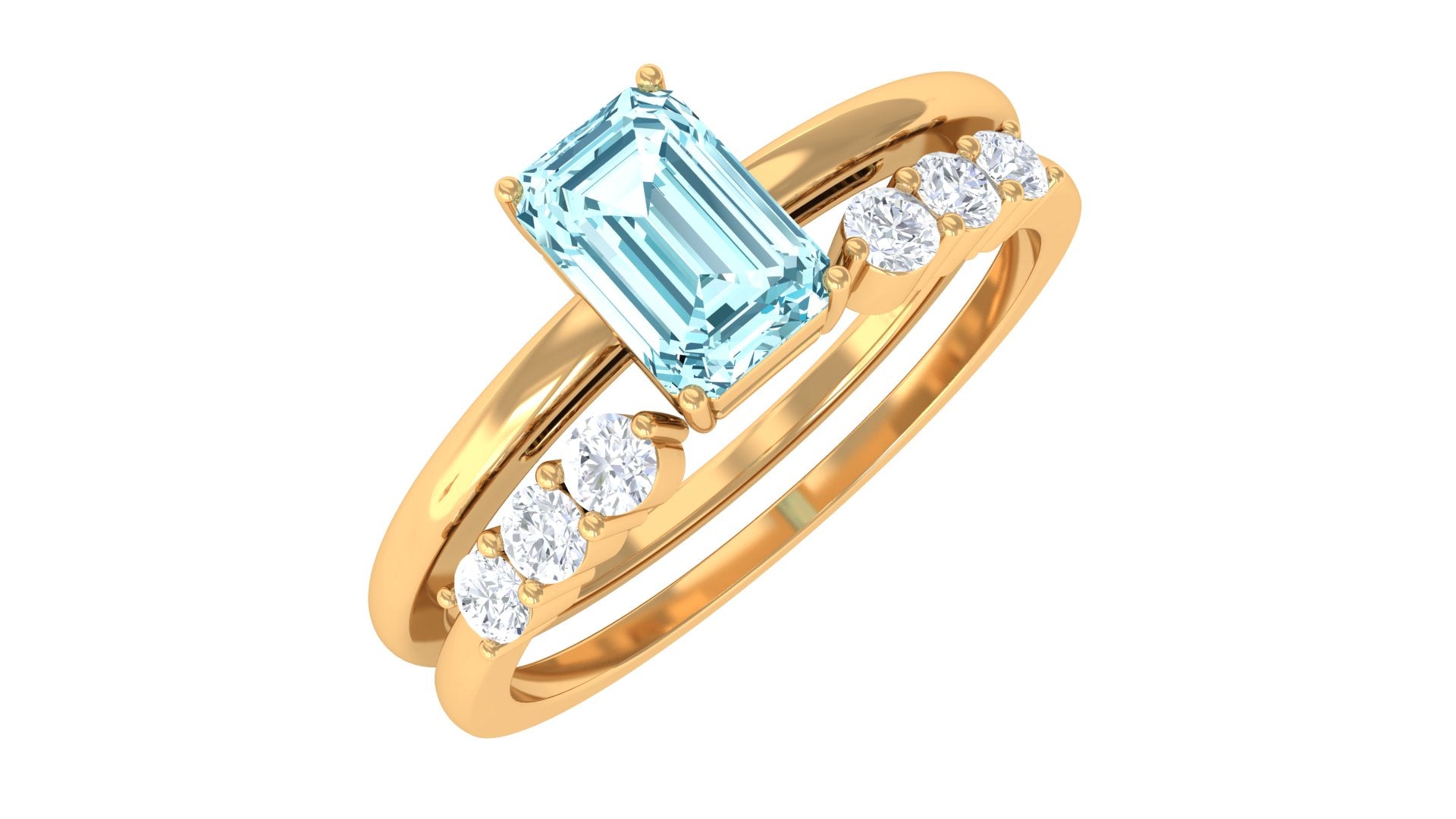Aquamarine and Diamond Solitaire Stackable Ring Set