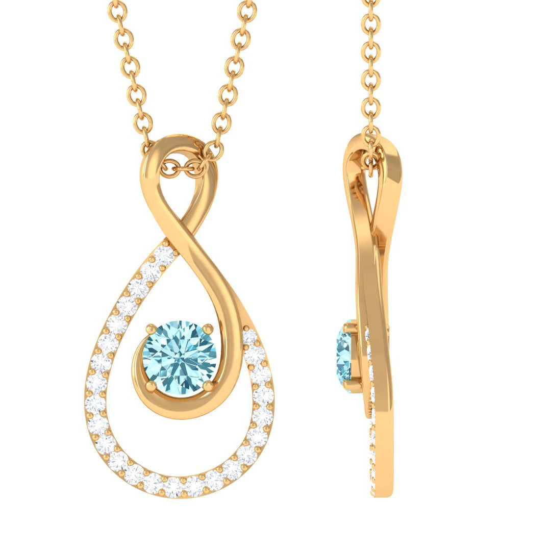 Experience the captivating beauty of the Infinity Pendant Necklace, where a sparkling Solitaire Aquamarine gracefully dances at its center. Surrounding this stunning Aquamarine, brilliant Round Diamond is elegantly encased, enhancing the shimmer and elegance of the Teardrop Pendant Necklace. It serves as a perfect gift for your special person on Valentines Day or your anniversary, showcasing your love and appreciation. Embrace the allure of this gorgeous piece, and let it be a symbol of your enduring affection and timeless style.