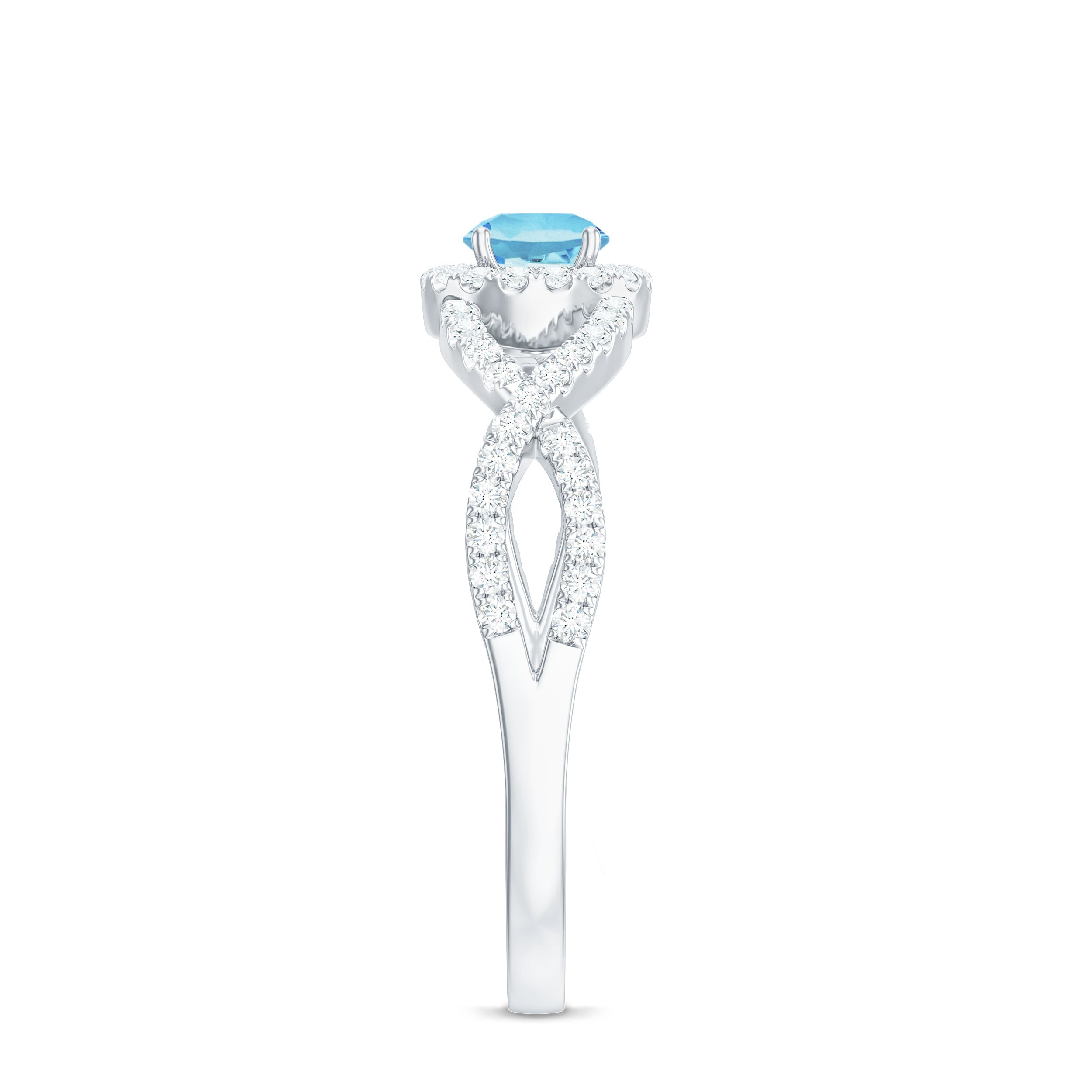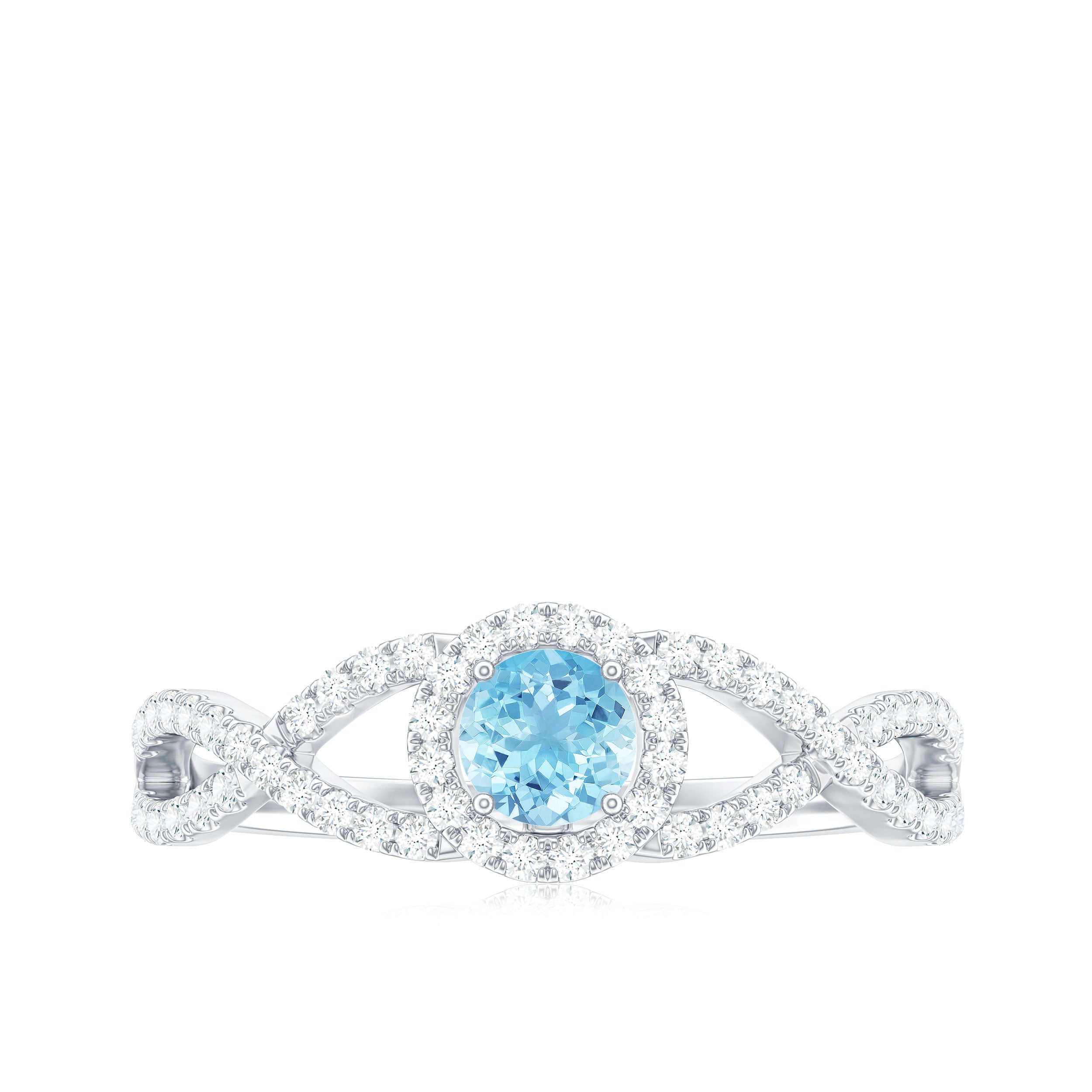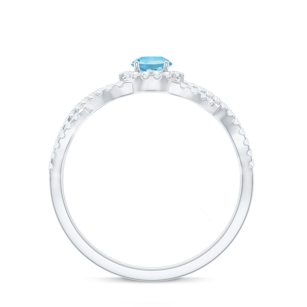 Aquamarine Criss Cross Engagement Ring with Diamond Halo