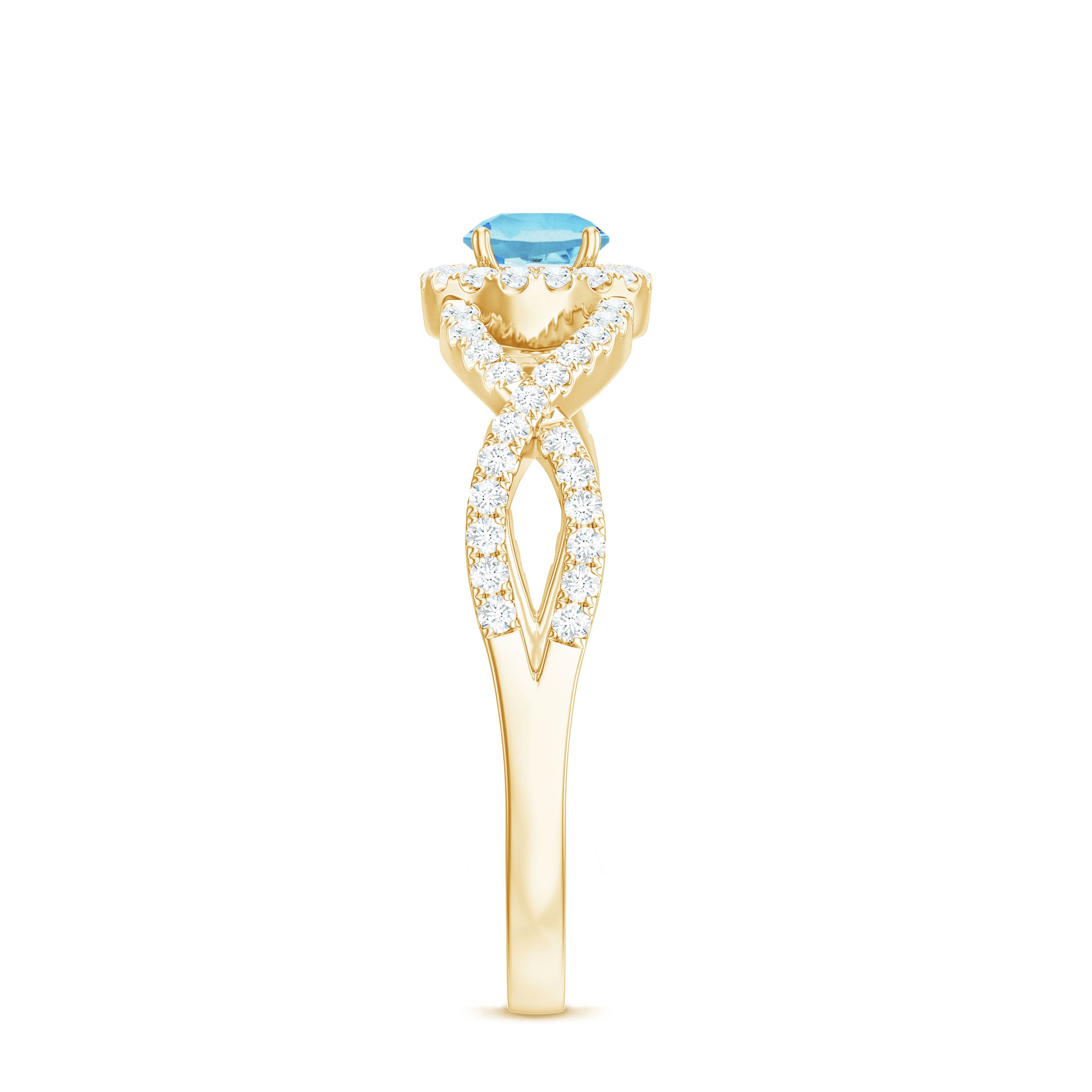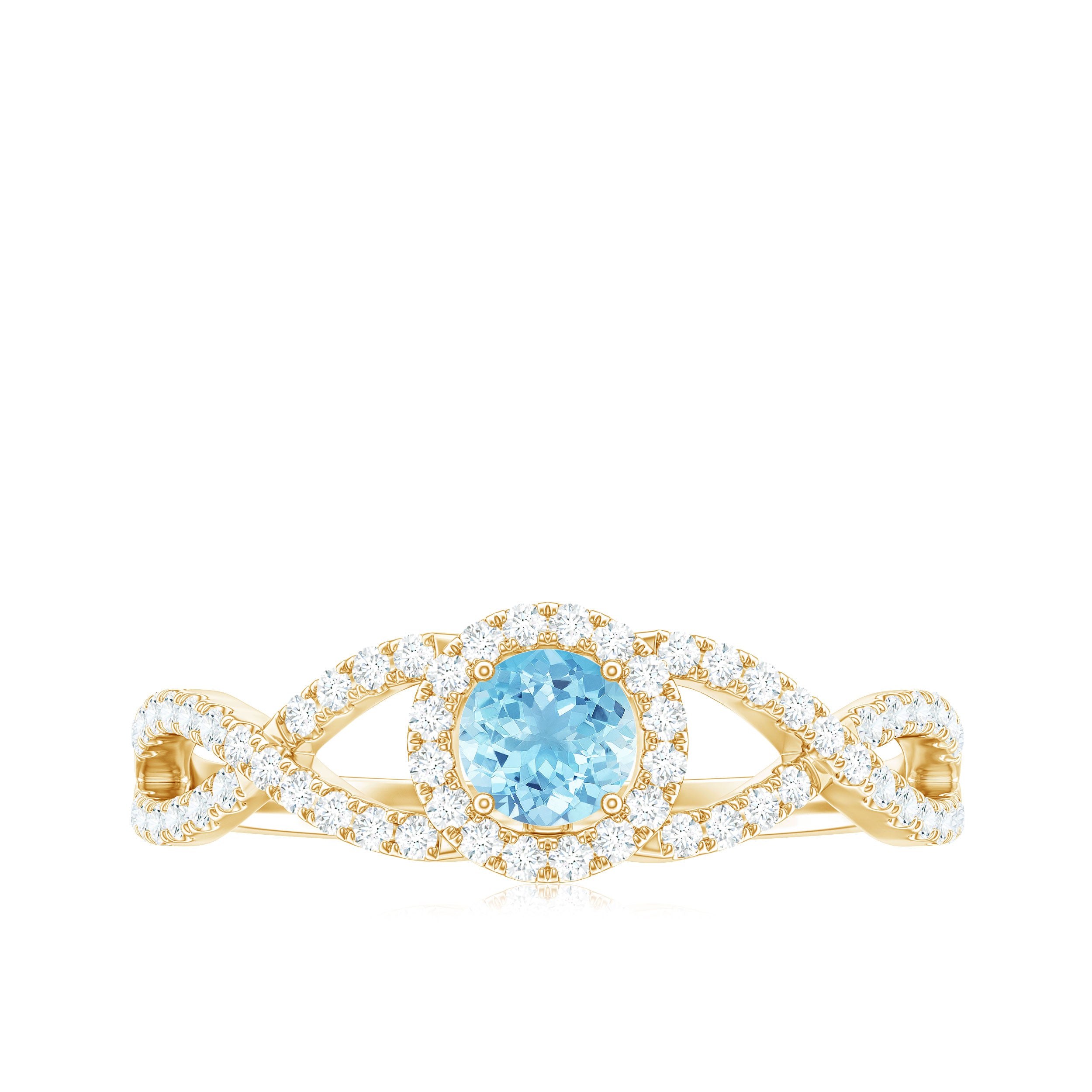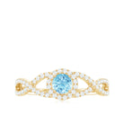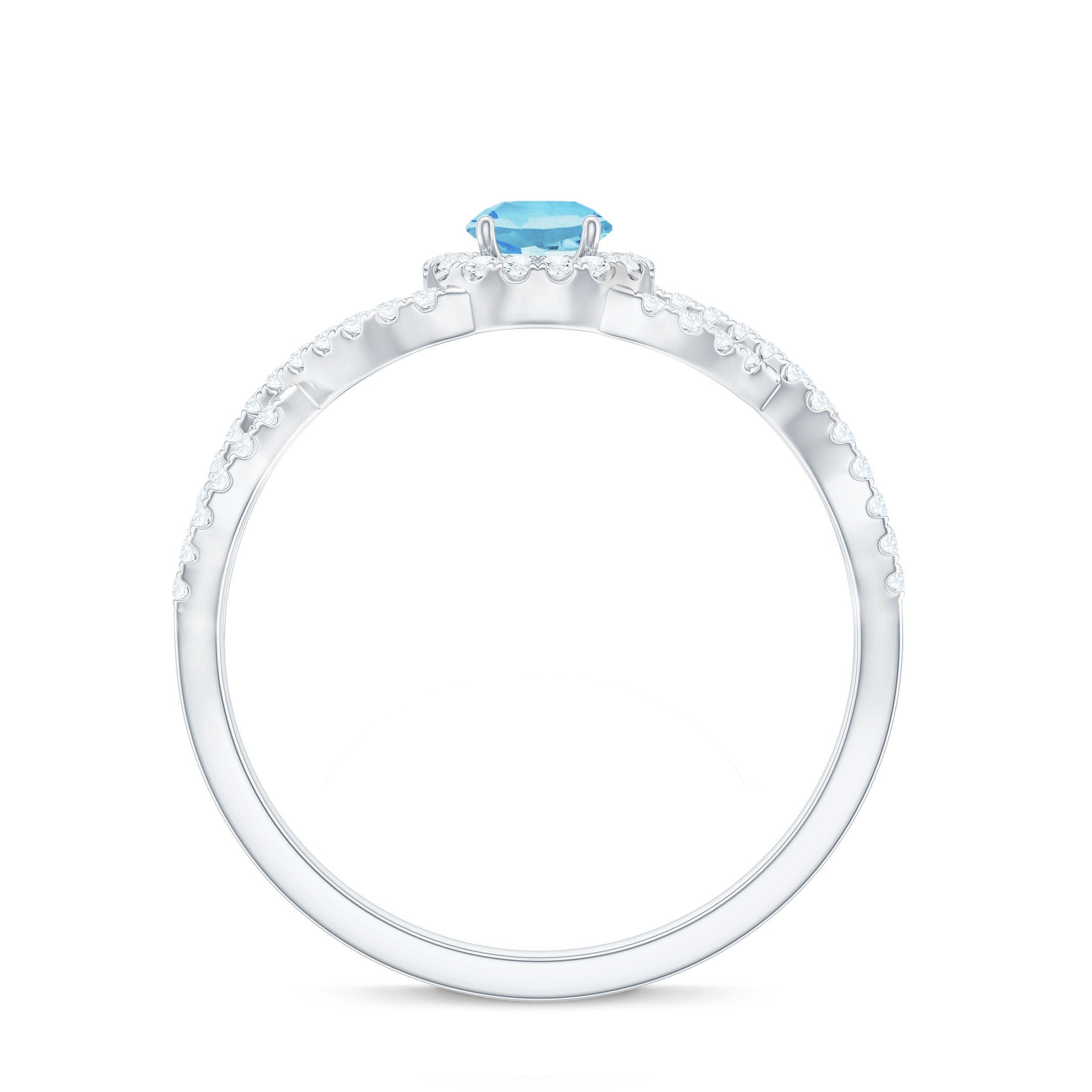 Aquamarine Criss Cross Engagement Ring with Diamond Halo