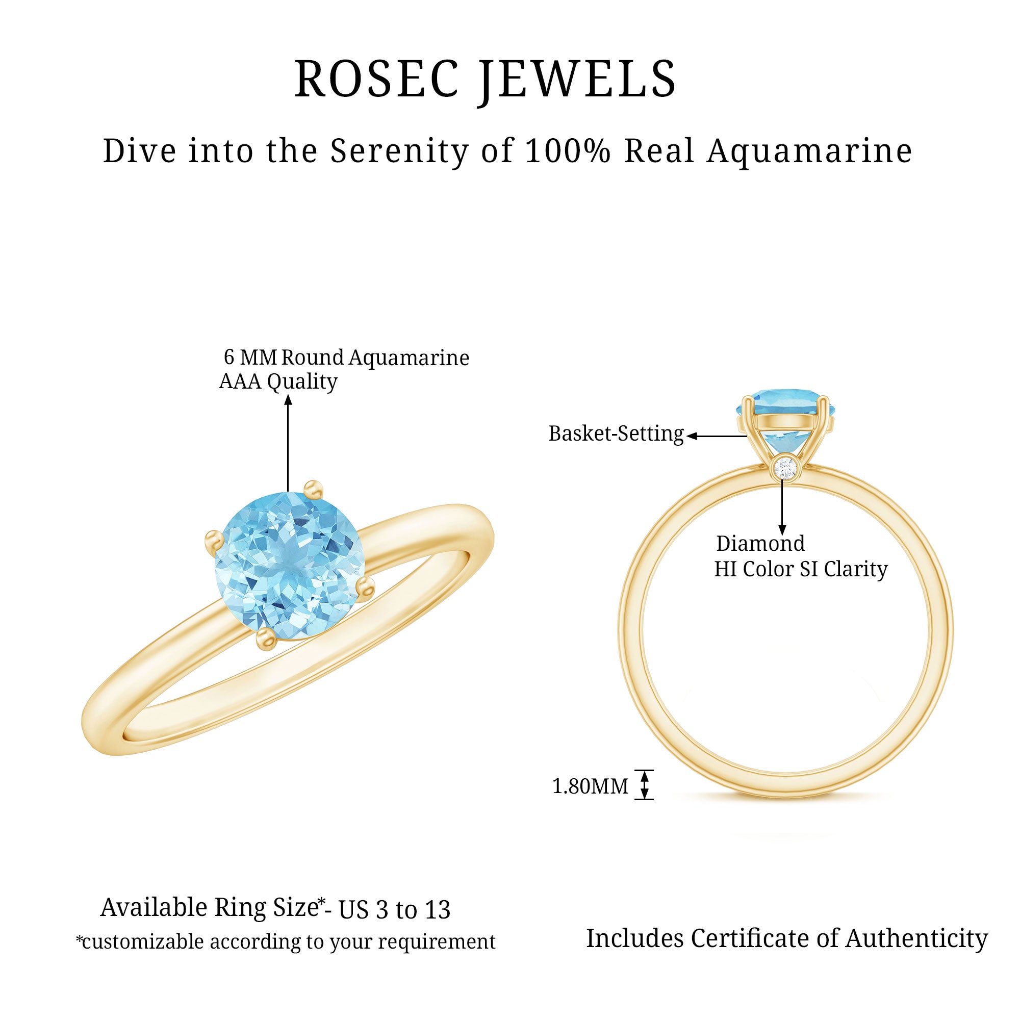 Confess your deepest feelings with a touch of serene elegance through this Aquamarine Promise Ring, a piece that speaks volumes without words. At its center, a glimmering 6 mm Round Shape Aquamarine gemstone set in Basket Setting radiates an ocean-blue hue, symbolizing loyalty and everlasting devotion. Placed secretly within the design lies a dainty Diamond beneath the Aquamarine, a delightful surprise that captures the essence of little mysteries of love and unforgettable moments. This thoughtful combination of AAA Quality Aquamarine and HI-SI Diamond creates a Commitment Ring that is as meaningful as it is beautiful, perfect for expressing promises, marking milestones or celebrating the moments that define your relationship. Crafted with care and presented in a signature jewelry box, this Aquamarine Diamond Ring comes in various ring sizes, making it ready to become a cherished symbol of commitment and affection. Romantic, heartfelt and timeless, this Aquamarine Solitaire Ring transforms a simple gesture into a profound declaration.