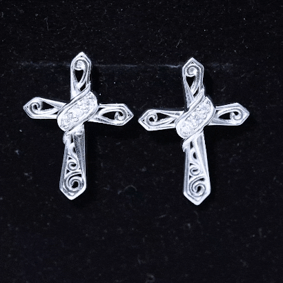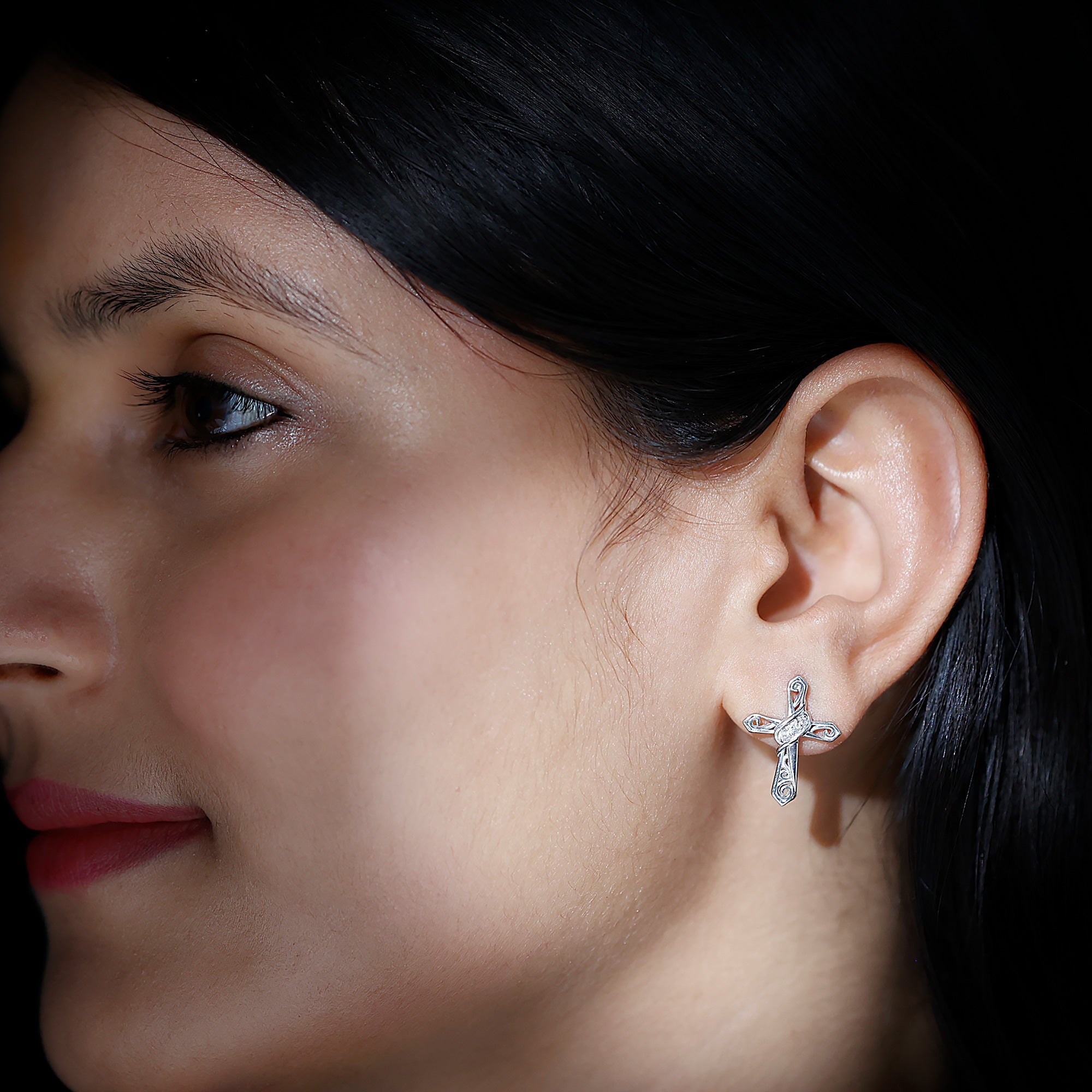 Art Deco Inspired Moissanite Cross Stud Earrings in Silver