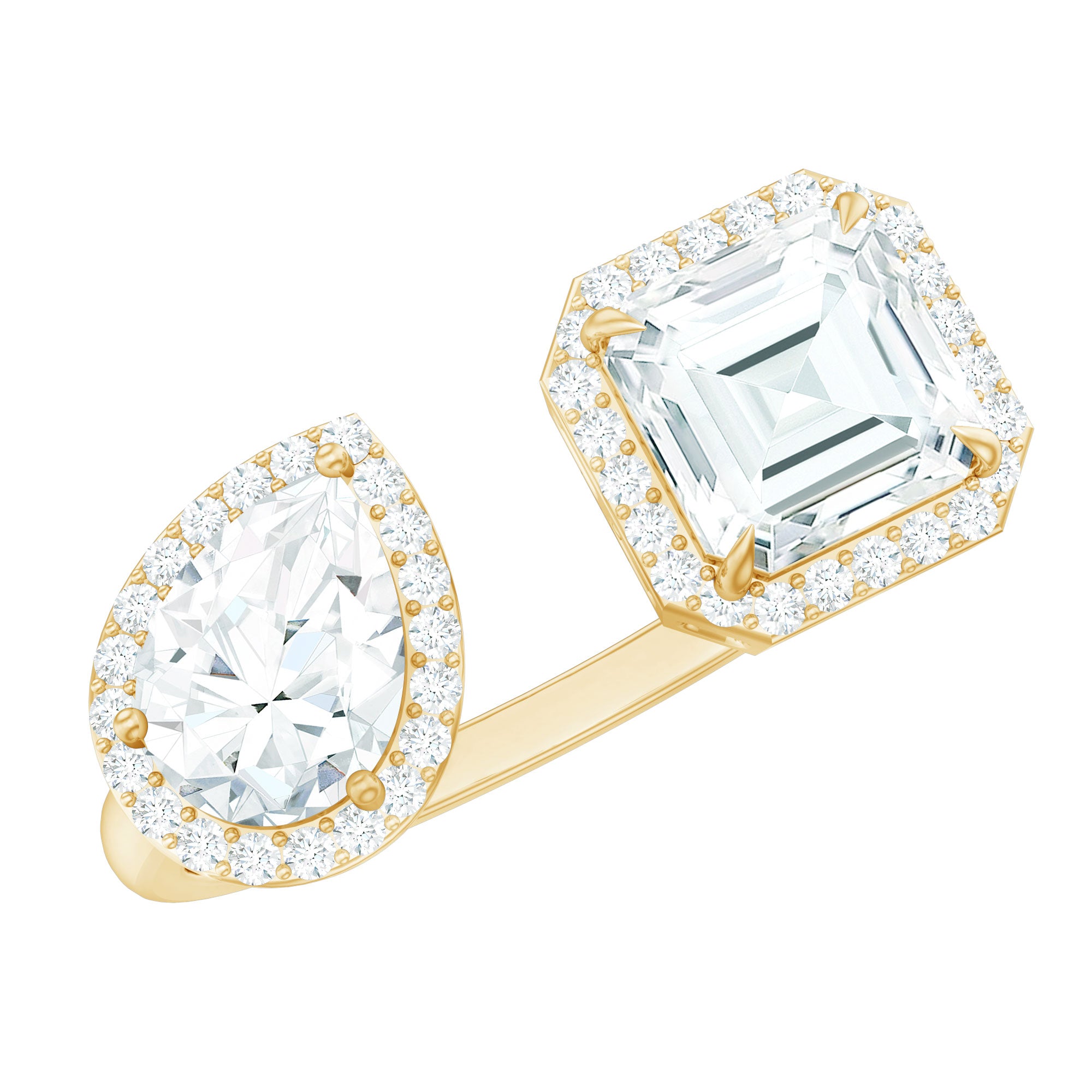Asscher and Pear Cut Moissanite Two Stone Engagement Ring