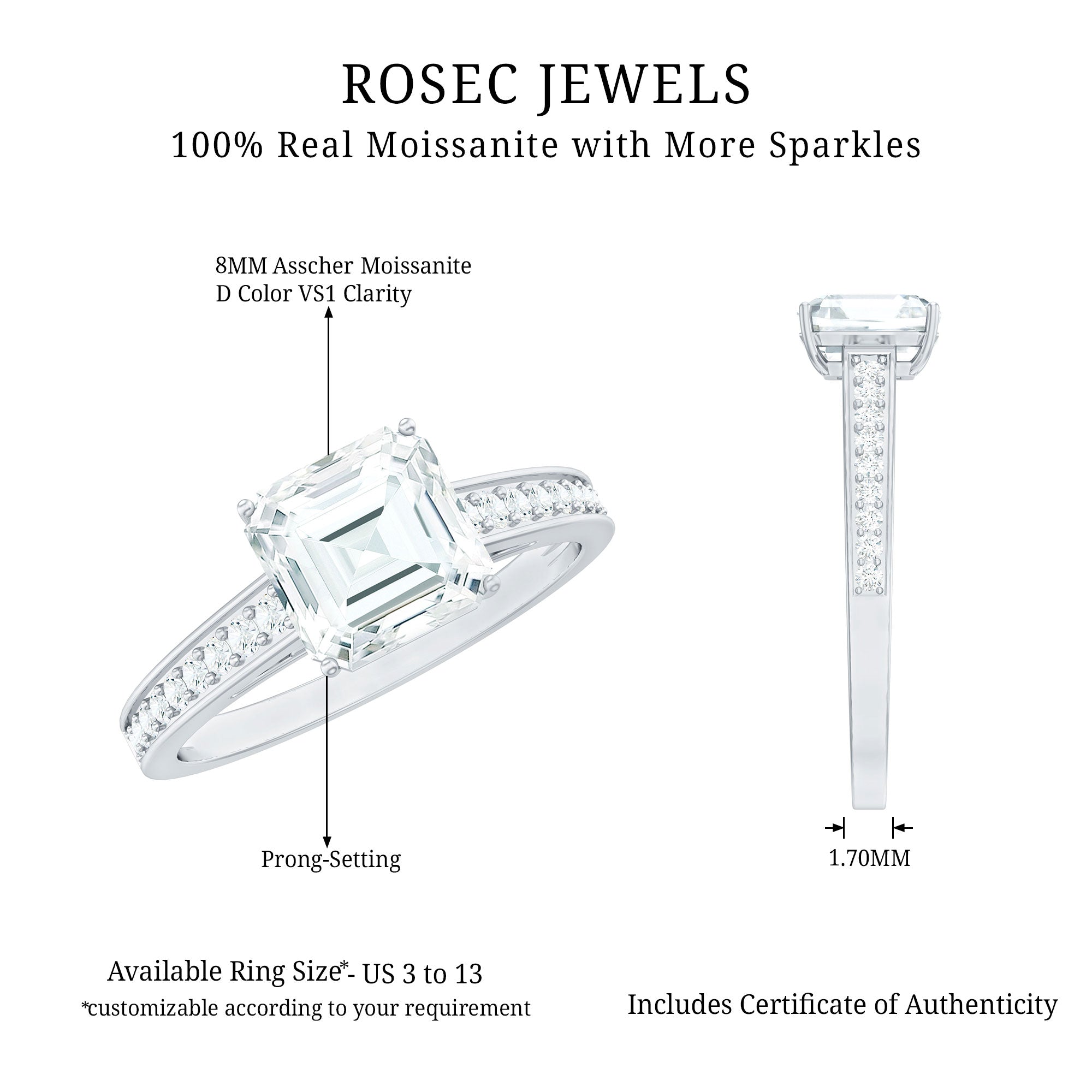 Asscher Cut 8 MM Moissanite Solitaire Engagement Ring with Side Stones