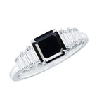 Asscher Cut Black Onyx Engagement Ring with Baguette Moissanite
