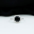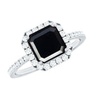 Turn a special moment into something unforgettable with a ring that is bold, elegant, and full of personality. Designed for those who love timeless beauty with a modern twist, this Black Onyx Engagement Ring is all about making a strong and stylish statement. At its heart sits an 8 MM asscher cut black onyx, held securely in prong setting. The center stone is surrounded by a sparkling halo of round cut diamonds that add brilliance without taking the spotlight. The band is lined with delicate diamond stones, giving the Halo Engagement Ring a graceful shimmer that enhances its bold center. The black and white contrast between the onyx and diamonds creates a chic, monochrome look that feels fresh and sophisticated. Every detail of this Asscher Cut Ring is thoughtfully crafted, using AAA quality black onyx and HI-SI quality real diamonds for lasting beauty and shine. It is made for someone who values strength, elegance, and originality in equal measure. Perfect for an engagement, an anniversary, or any meaningful occasion, this Onyx and Diamond Engagement Ring is a symbol of a love that is anything but ordinary. Let this bold yet timeless piece tell your story in a way no one will forget.