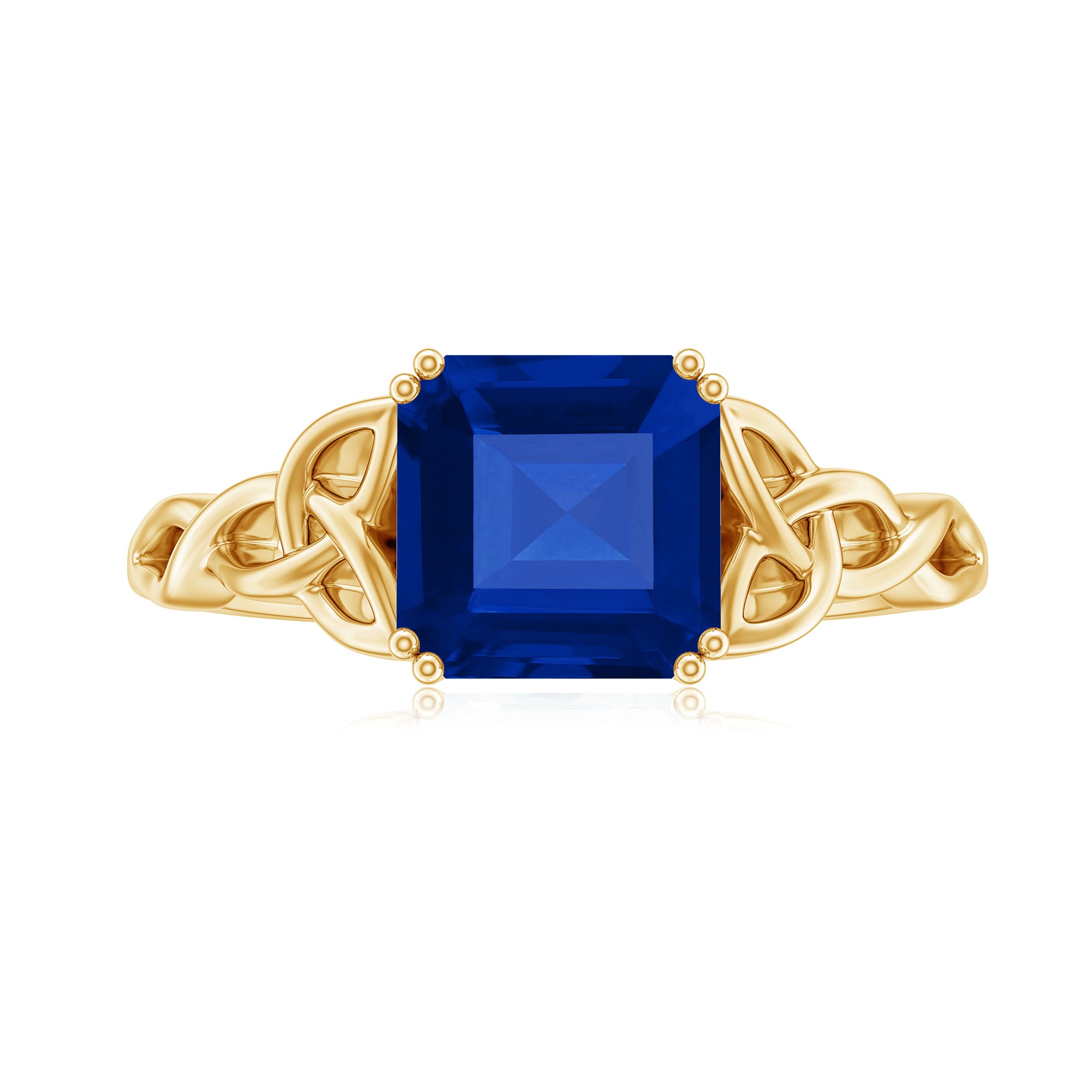 Asscher Cut Lab Grown Blue Sapphire Solitaire Celtic Knot Ring