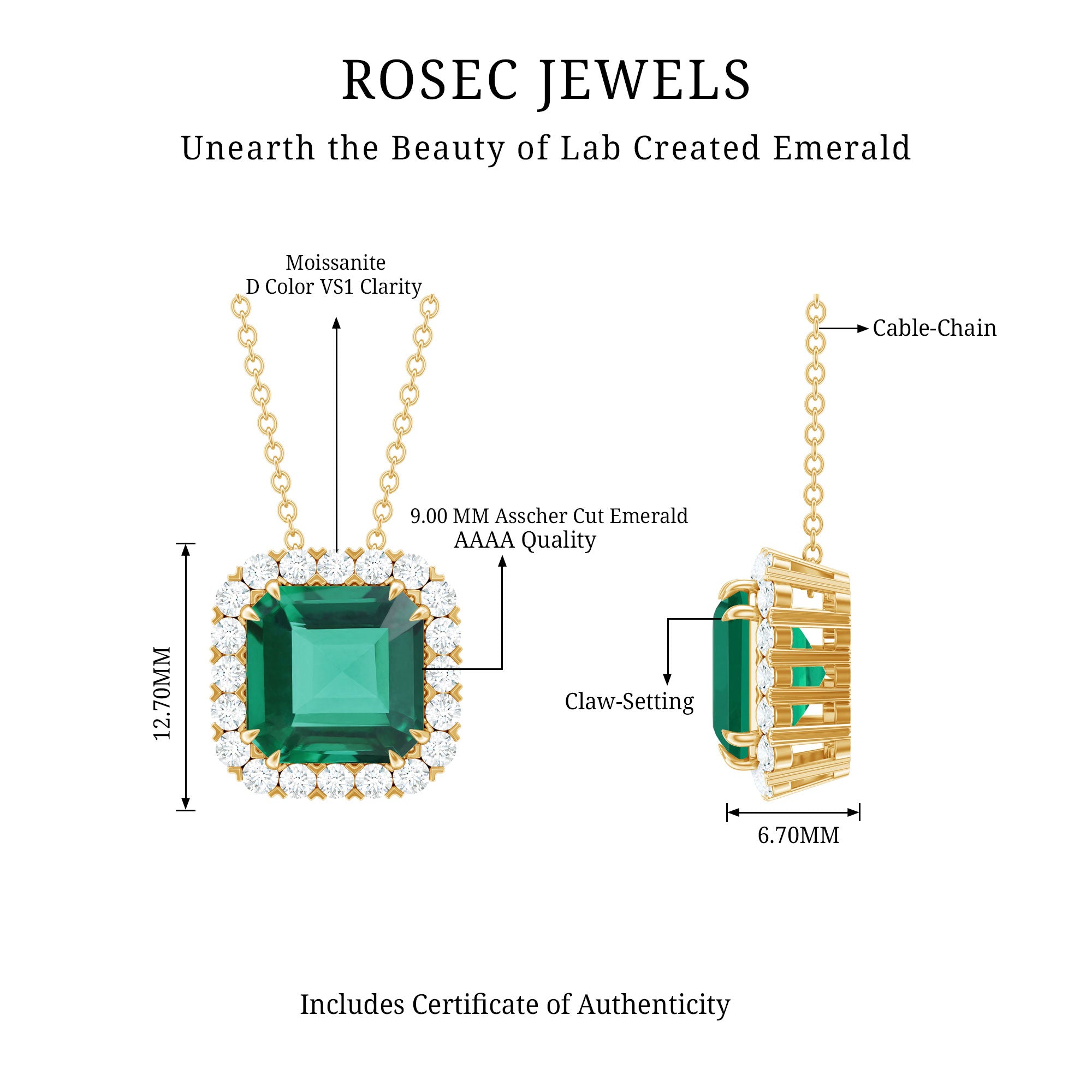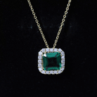 Asscher Cut Lab Grown Emerald Halo Necklace with Moissanite