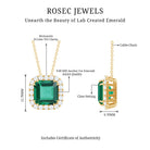 Make a bold and timeless statement with this stunning Lab Grown Emerald Necklace, a true showstopper for every special occasion. Handcrafted in 14k yellow gold plated silver, the Halo Pendant showcases a mesmerizing 9 MM Asscher Cut Lab Grown Emerald, held securely in double claw setting that allows the gemstone’s rich green hue to shine from every angle. Encircling the vibrant emerald is a dazzling halo of Round Brilliant Cut Moissanite, adding brilliant contrast and depth to the design. Suspended from a durable cable chain, the Green Stone Necklace sits beautifully on the neckline, making it a perfect piece to wear with everything from formal evening wear to a chic cocktail outfit. The fine craftsmanship and classic design make this Emerald and Moissanite Necklace a versatile piece that transitions effortlessly from a day celebration to an elegant night event. The AAAA quality lab grown emerald offers intense color and clarity, while the D-VS1 quality moissanite halo provides exceptional sparkle, together creating a radiant focal point that draws attention in the most elegant way. With its vintage inspired appeal and modern glamour, this Asscher Cut Necklace is a treasure that will be cherished for years to come.