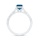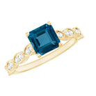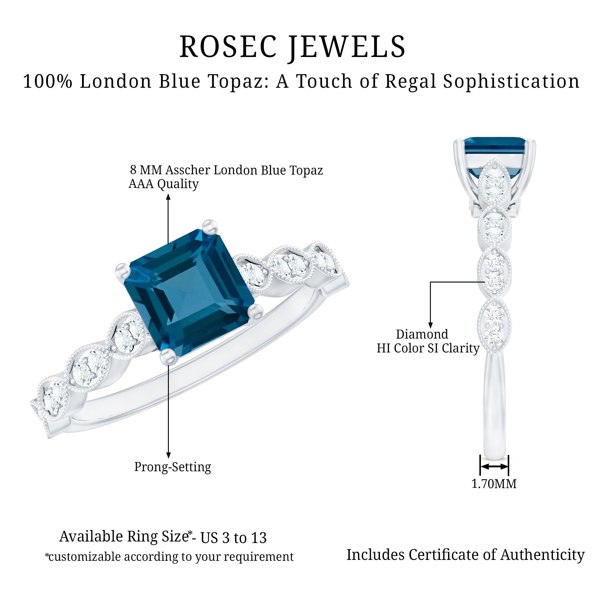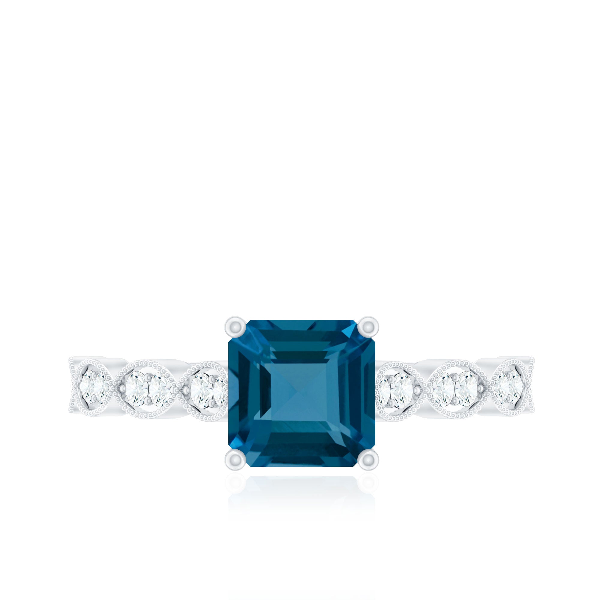 8mm Asscher Cut London Blue Topaz Designer Engagement Ring with Diamond
