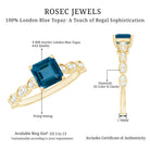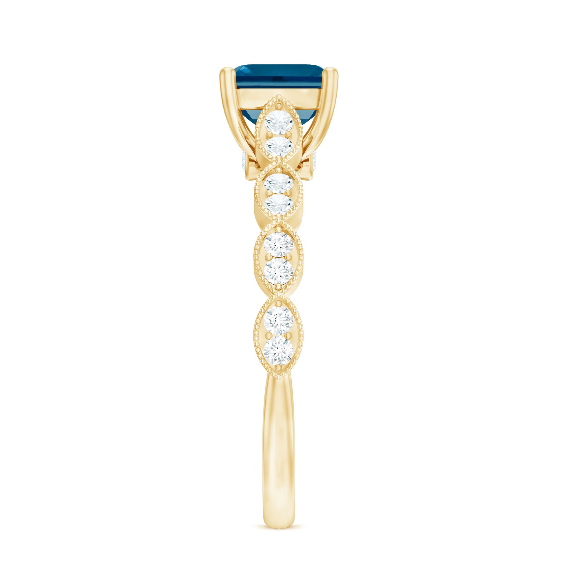 This London Blue Topaz Ring is not only beautiful but also stylish, making it a piece you will love to wear all day long. It features a 8mm Asscher Cut London Blue Topaz set in a prong setting, complemented by diamonds as side stones on a solitaire ring adorned with gold beaded details, making it truly eye-catching jewelry. Kneel down and propose to her with this exquisite Engagement Ring. The ring has a total weight of 4 Carats and is of AAA quality. All of our gemstones are certified and undergo rigorous quality checks. What sets this Designer Engagement Ring apart is the intricate beaded detailing along the shank, which gives it a stunning vintage aesthetic that is timeless. The inclusion of tiny diamond side stones enhances its brilliance, resulting in a design that radiates delicacy, romance, and individuality. Moreover, London Blue Topaz is the birthstone for December, making this an especially thoughtful gift for anyone born in that month. Whether you are proposing, celebrating an anniversary, or treating yourself to something meaningful, this Real Blue Topaz and Diamond Ring is a treasured choice for eternity.