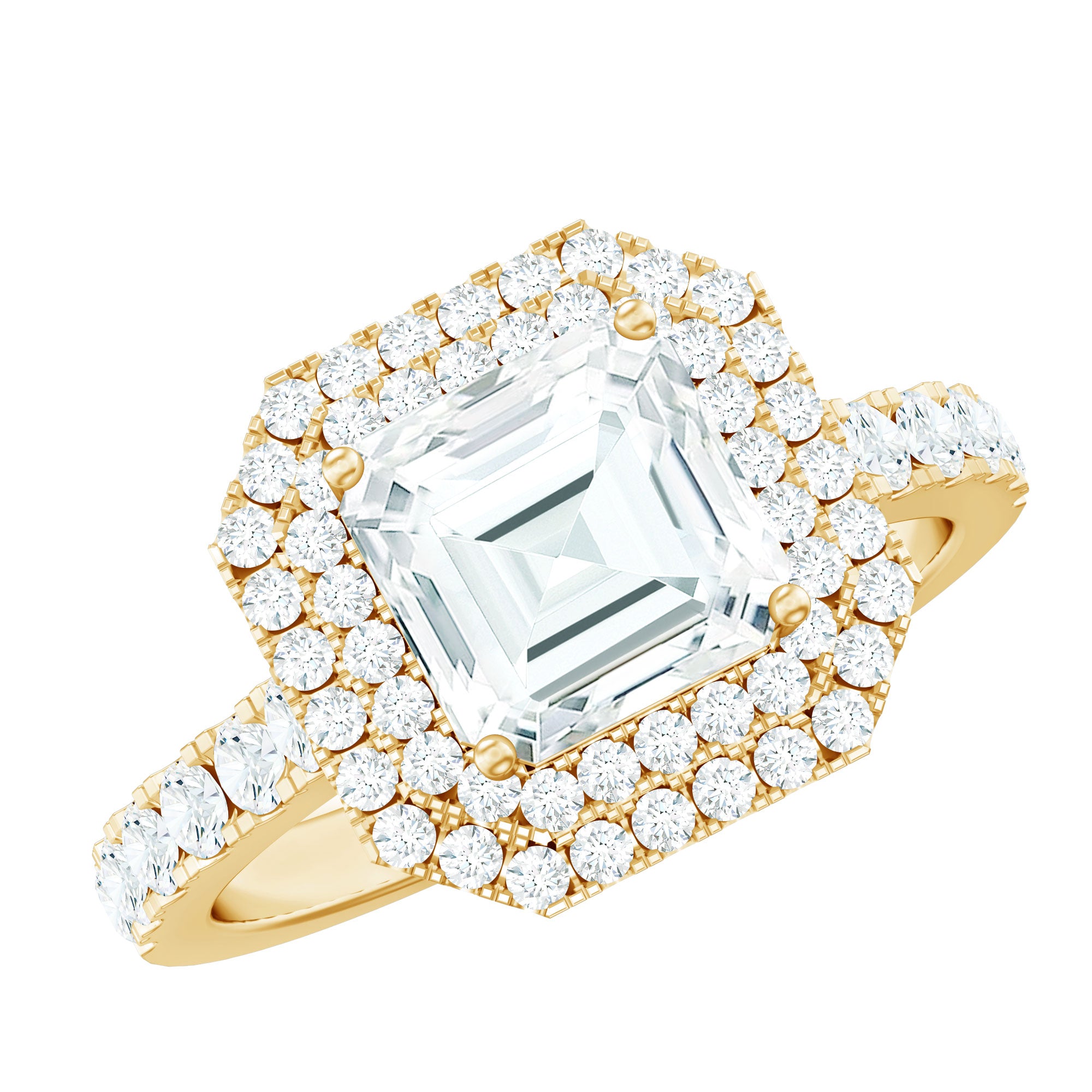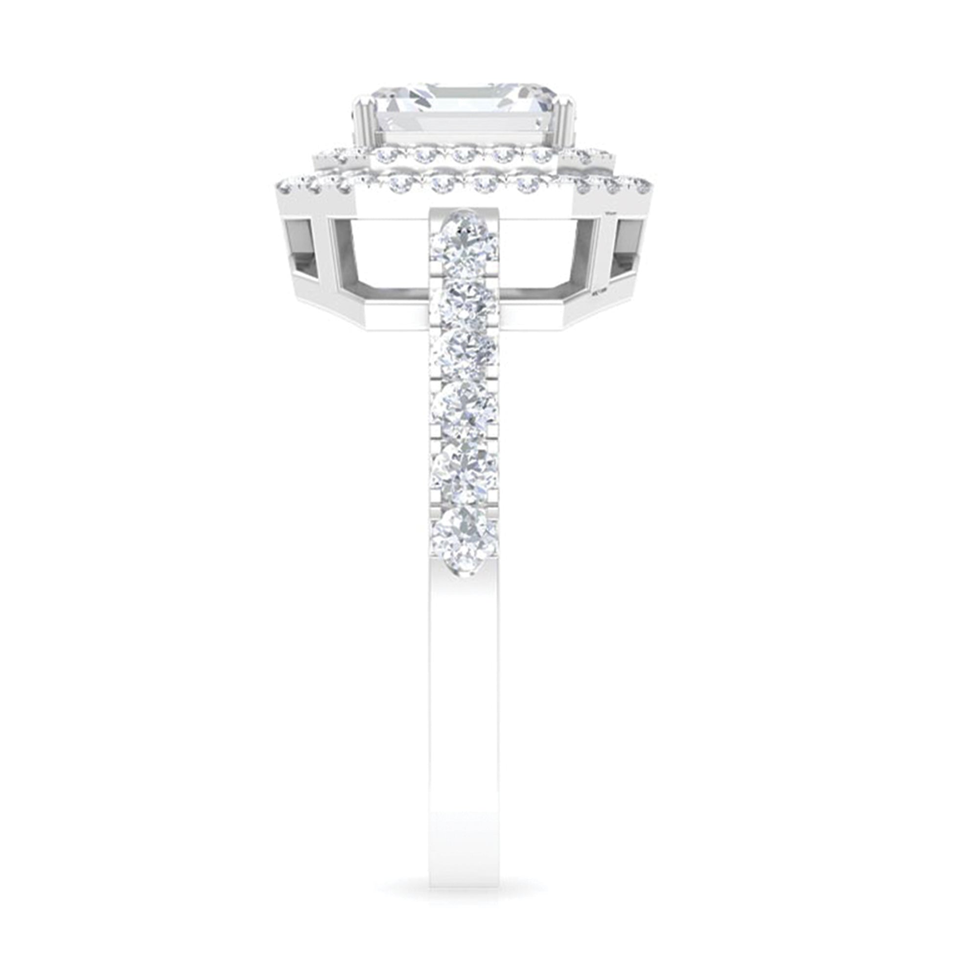 Certified Asscher Cut Moissanite Double Halo Engagement Ring