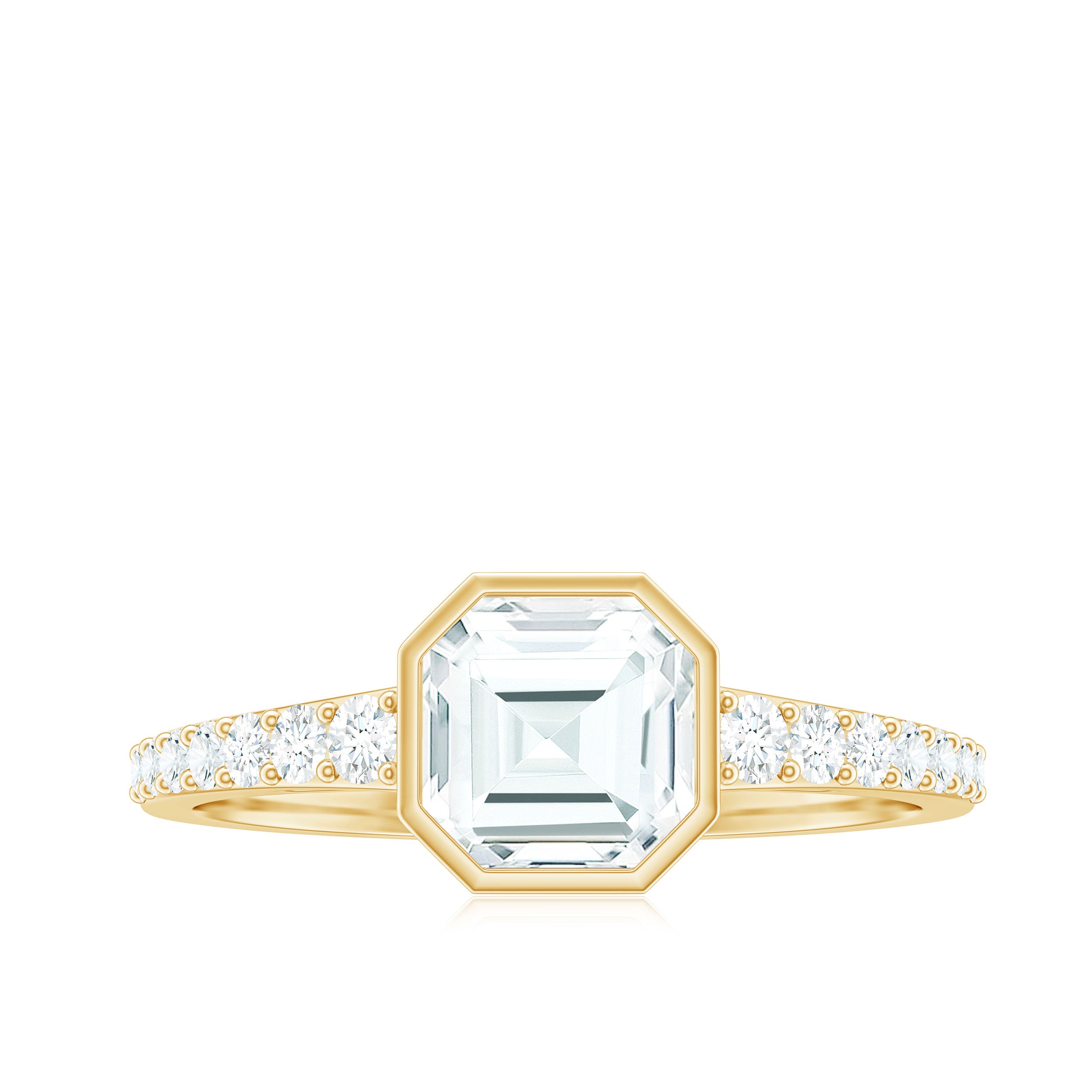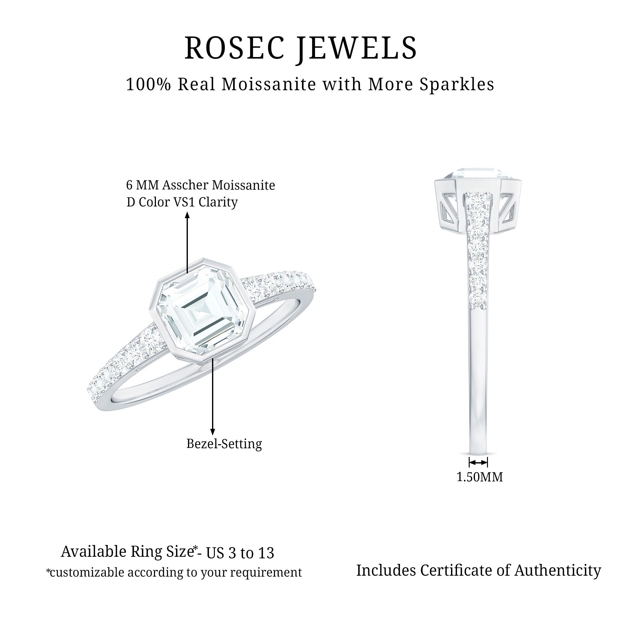 Asscher Cut Moissanite Solitaire Engagement Ring in Bezel Setting