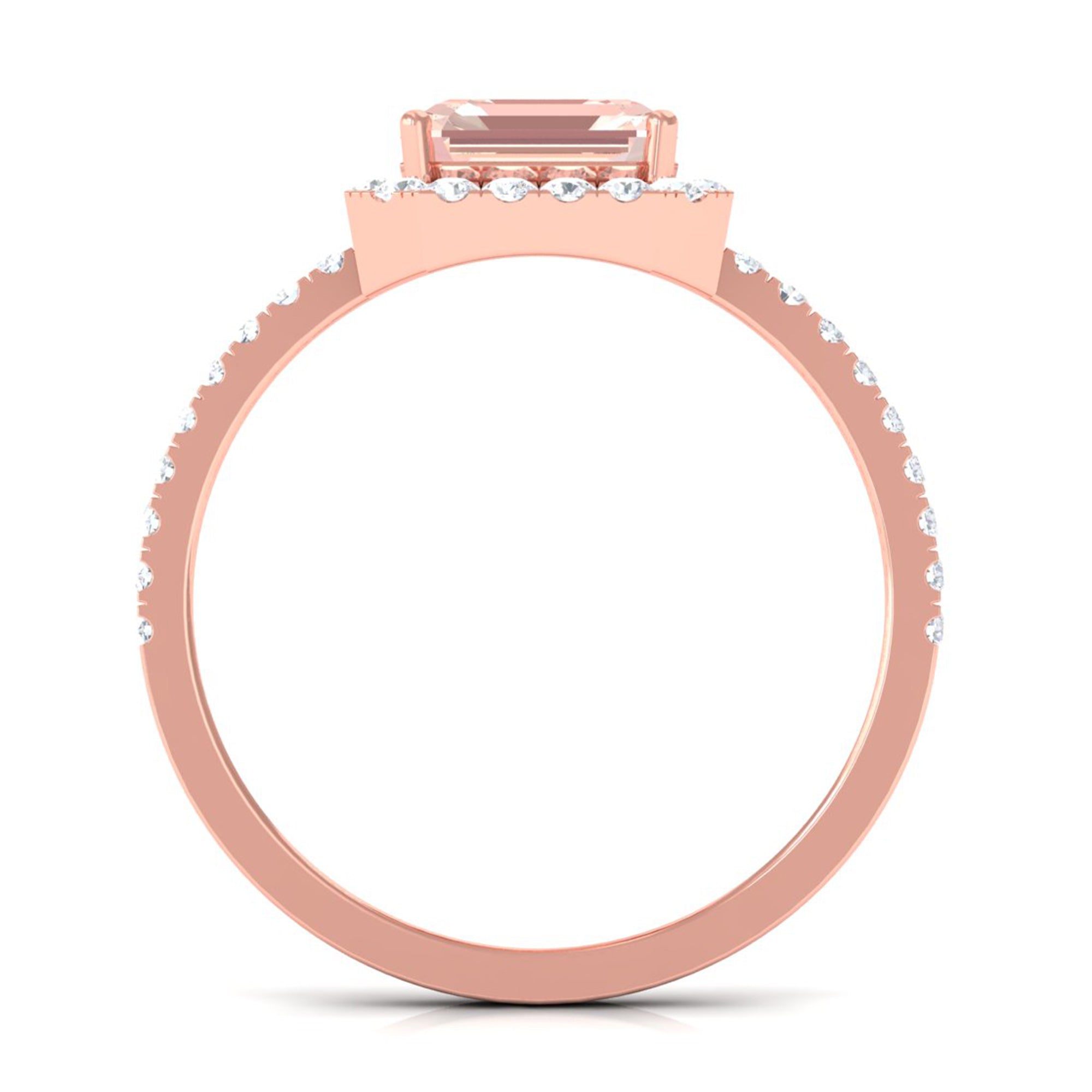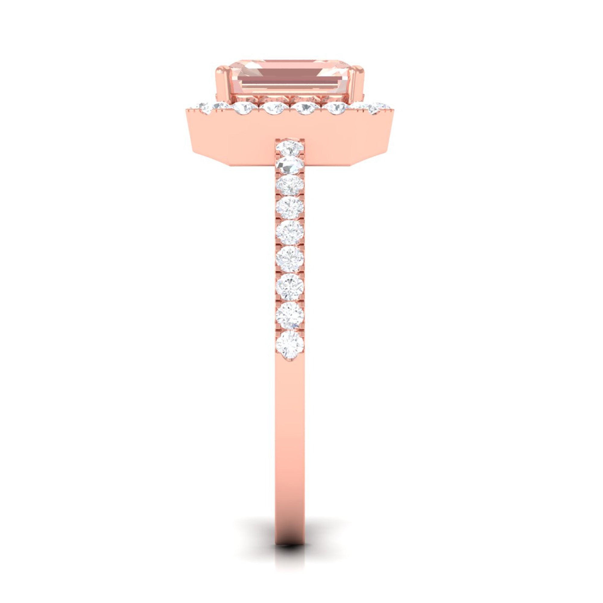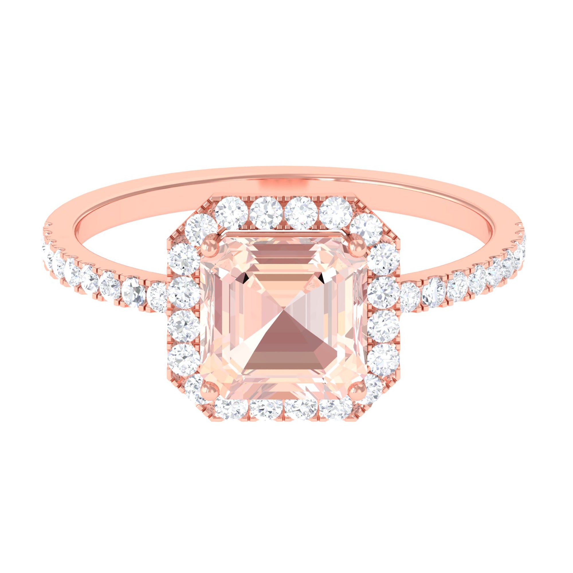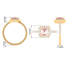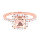 Asscher Cut Morganite Halo Engagement Ring with Diamond
