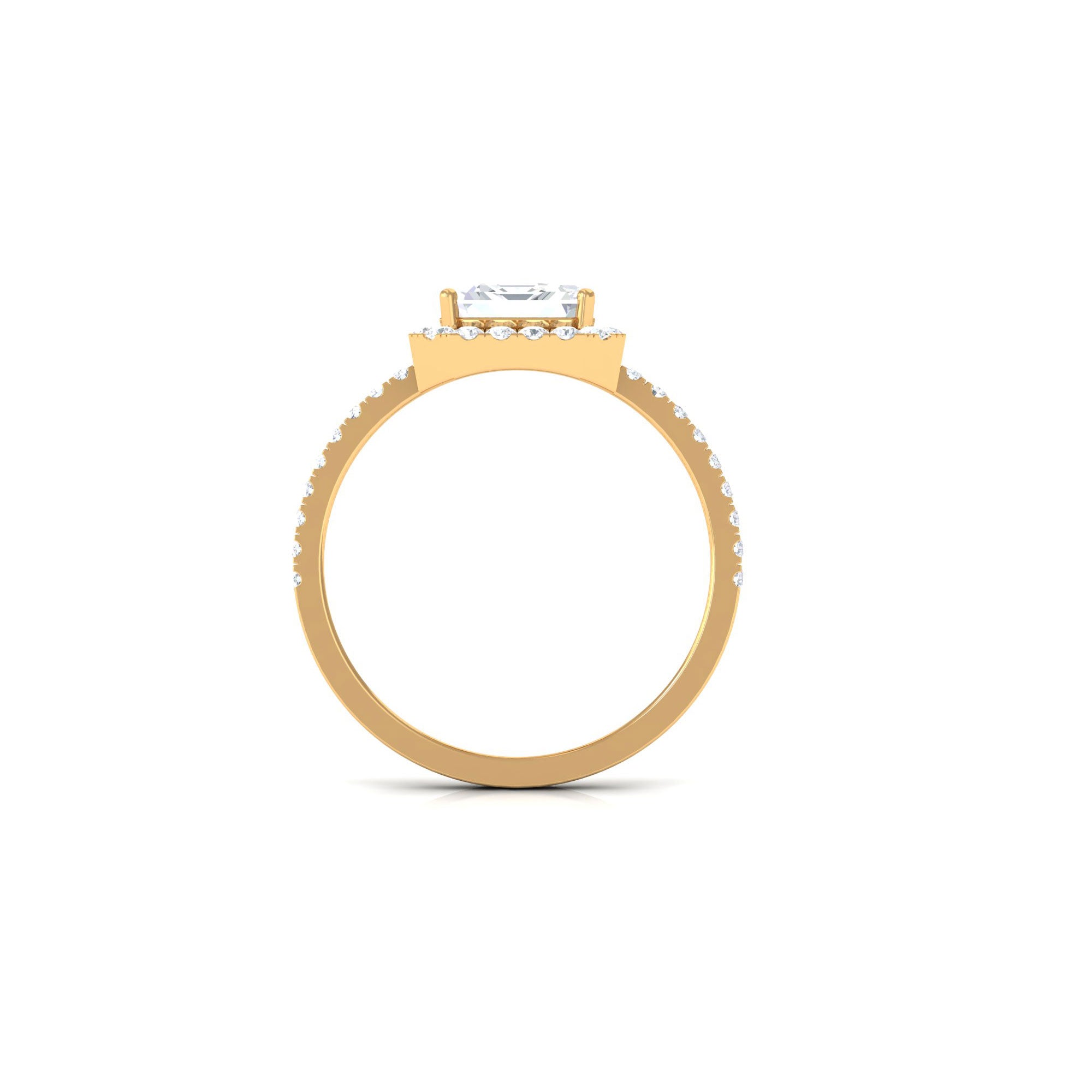 This stunning engagement ring features a dazzling Asscher cut simulated diamond center stone, surrounded by a halo of smaller sparkling zircon. The ring is crafted from gleaming gold, adding a touch of luxury to this already breathtaking piece. Whether youre looking for an affordable and traditional CZ ring or simply admire the classic beauty of this design, this ring is sure to impress.