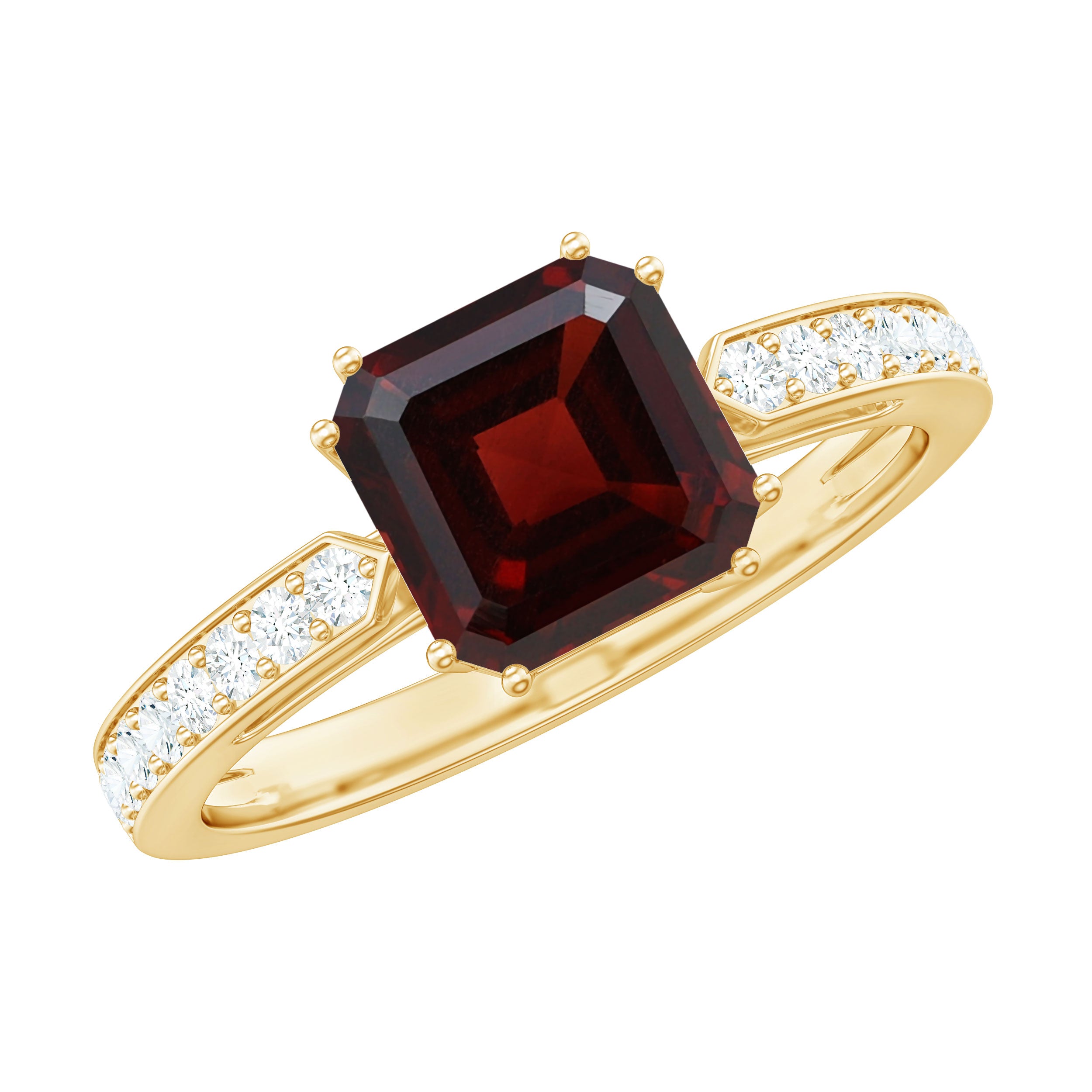 Asscher Garnet Solitaire Engagement Ring with Diamond