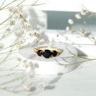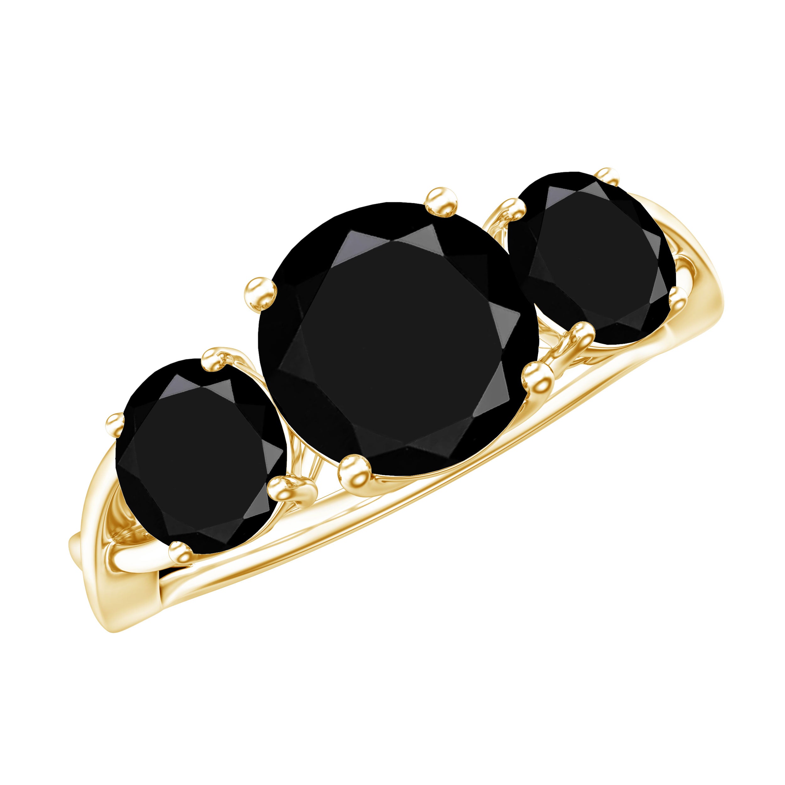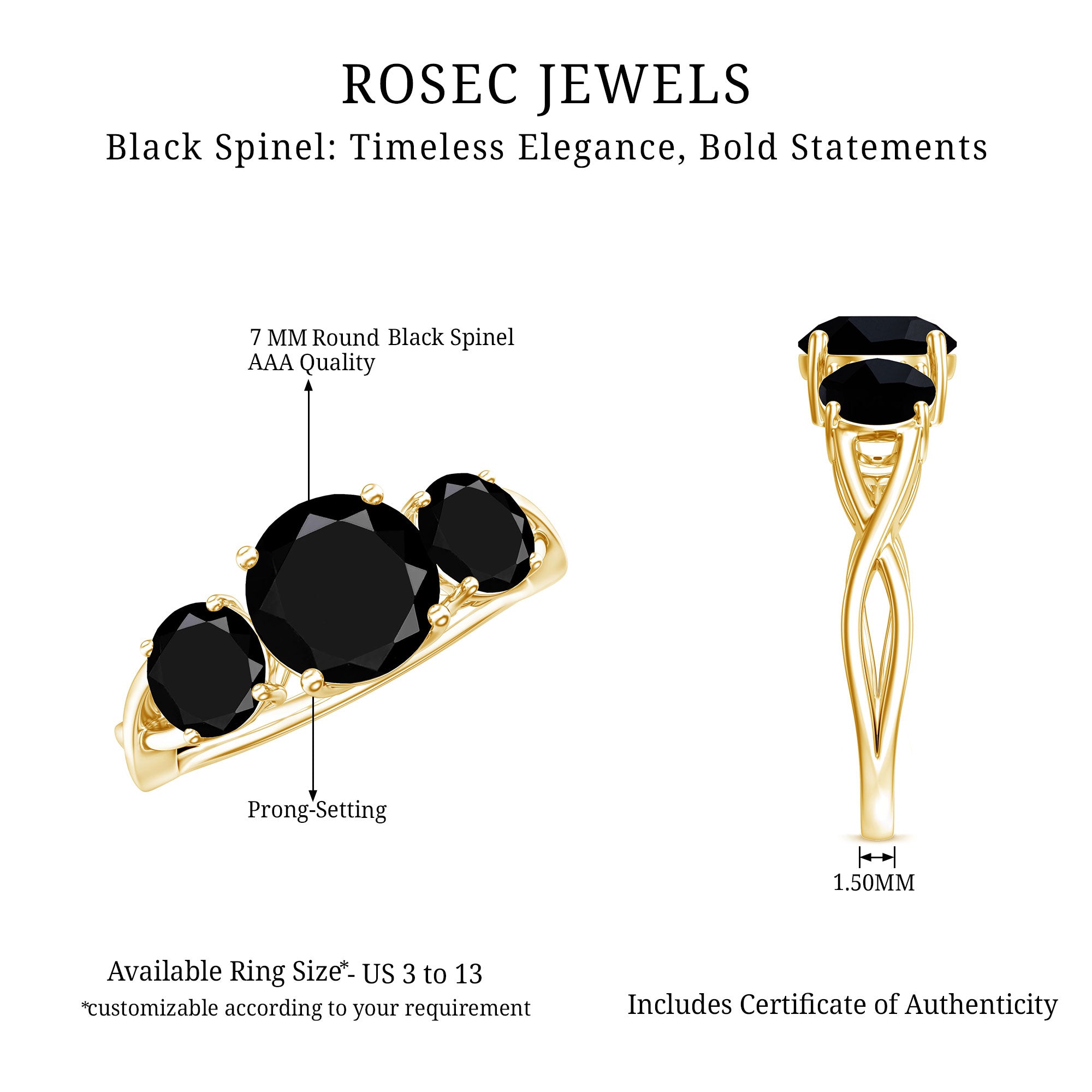 Celebrate the special occasion of your life by gifting your beloved this lovely Three Stone Ring adorned with Round Cut Black Spinel in Prong Setting. This Anniversary Ring for Women is crafted with Solid Gold with a Crossover Shank to make her fall in love with you all over again.