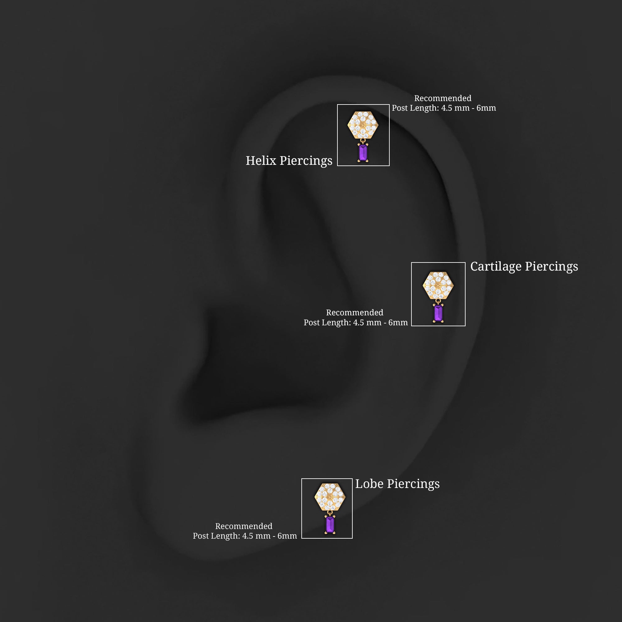 Baguette Amethyst Cartilage Drop Earring with Moissanite